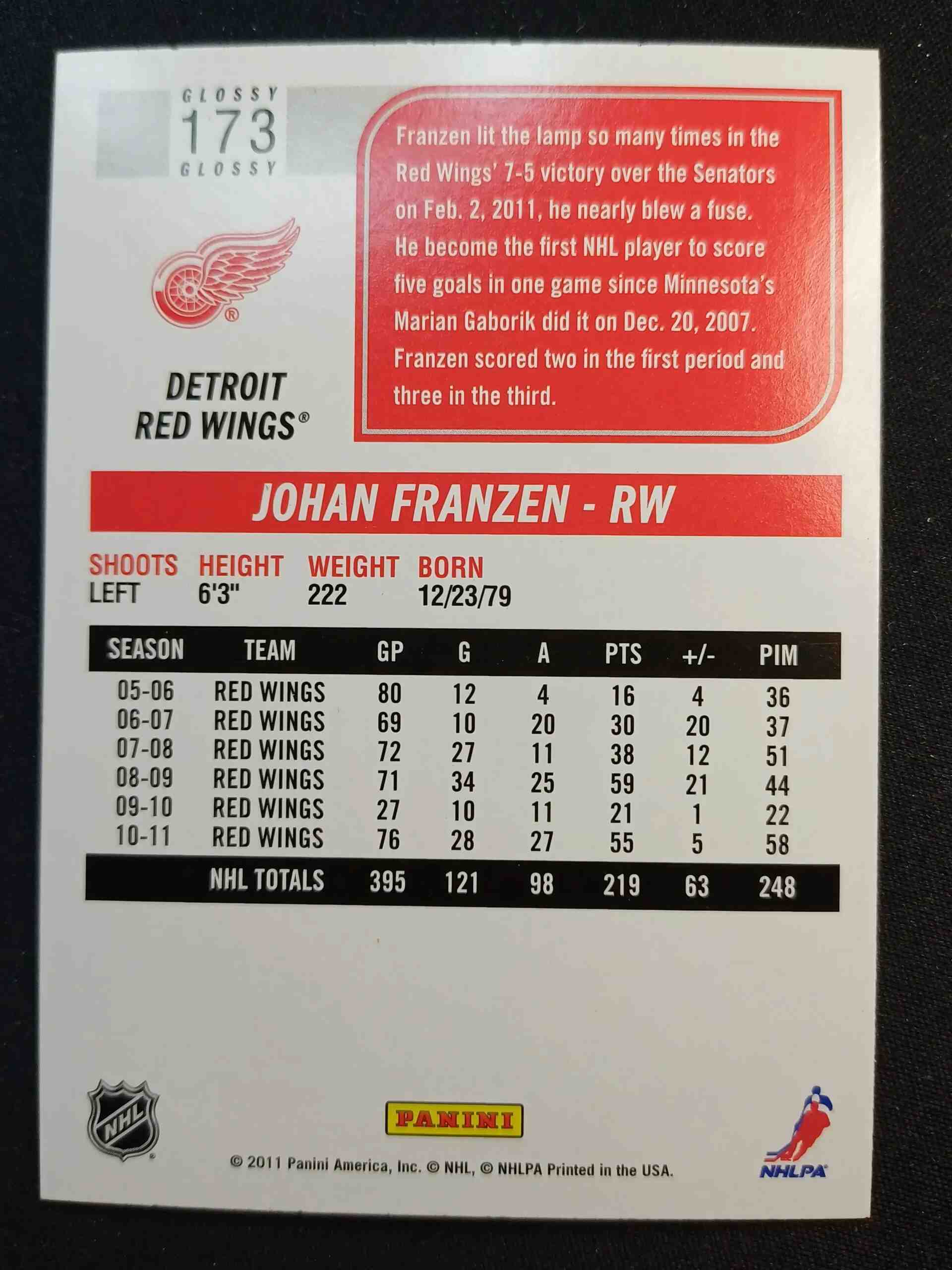 2011/2012 Panini Score Glossy 173 Johan Franzen Paralel