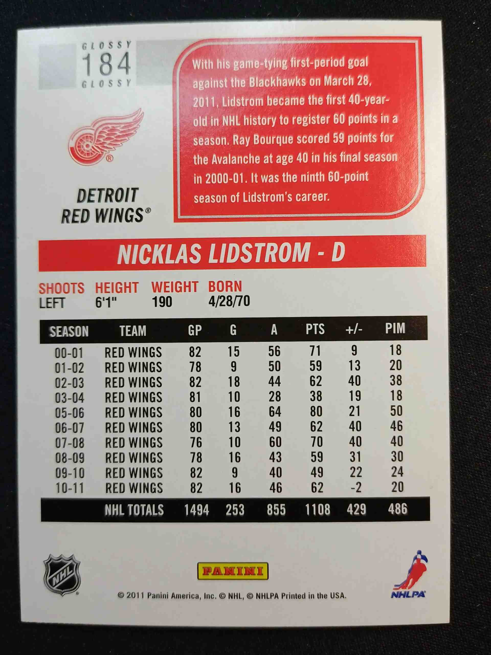 Sběratelská karta 2011/2012 Panini Score Glossy 184 Nicklas Lidstrom Paralel