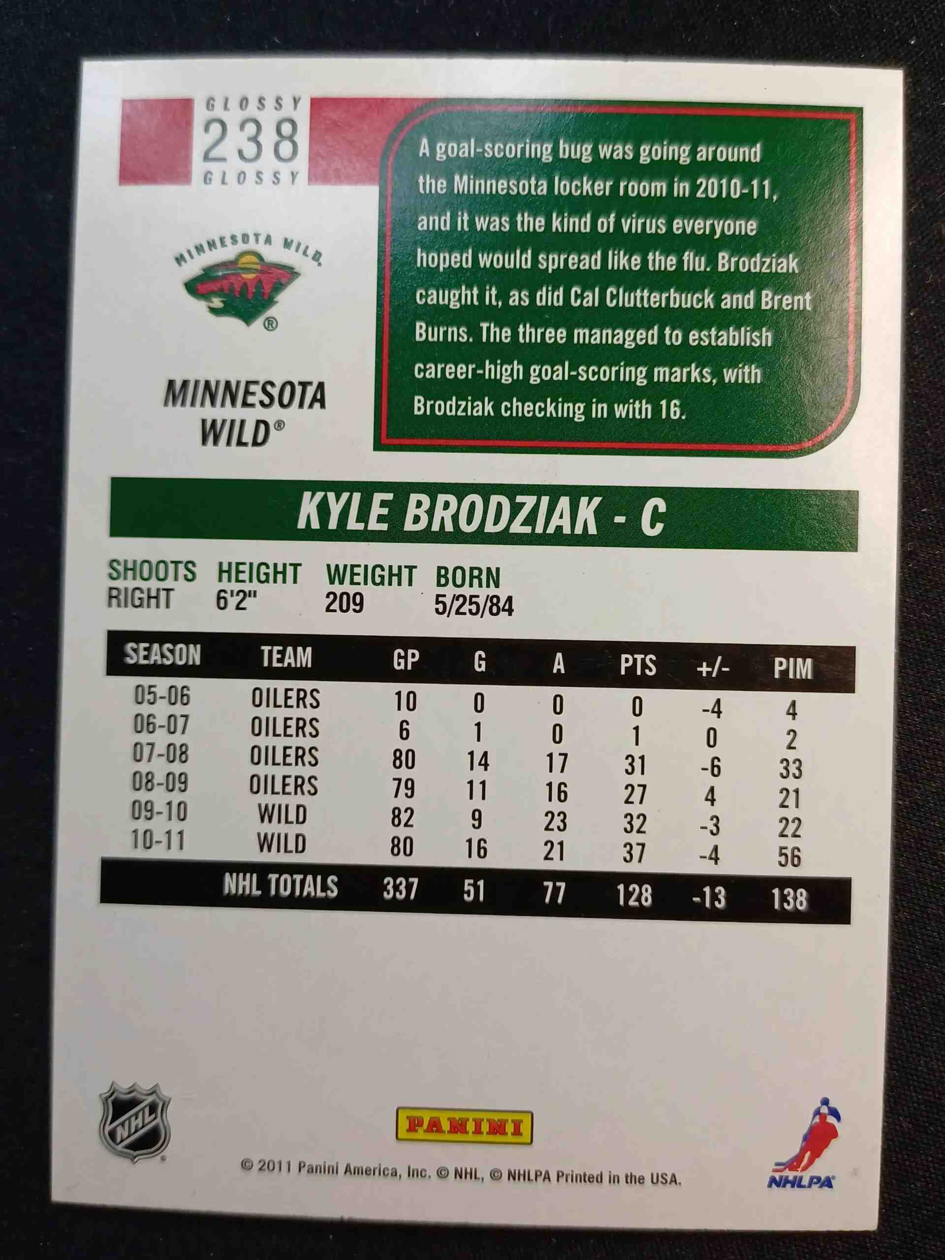 Sběratelská karta 2011/2012 Panini Score Glossy 238 Kyle Brodziak Paralel