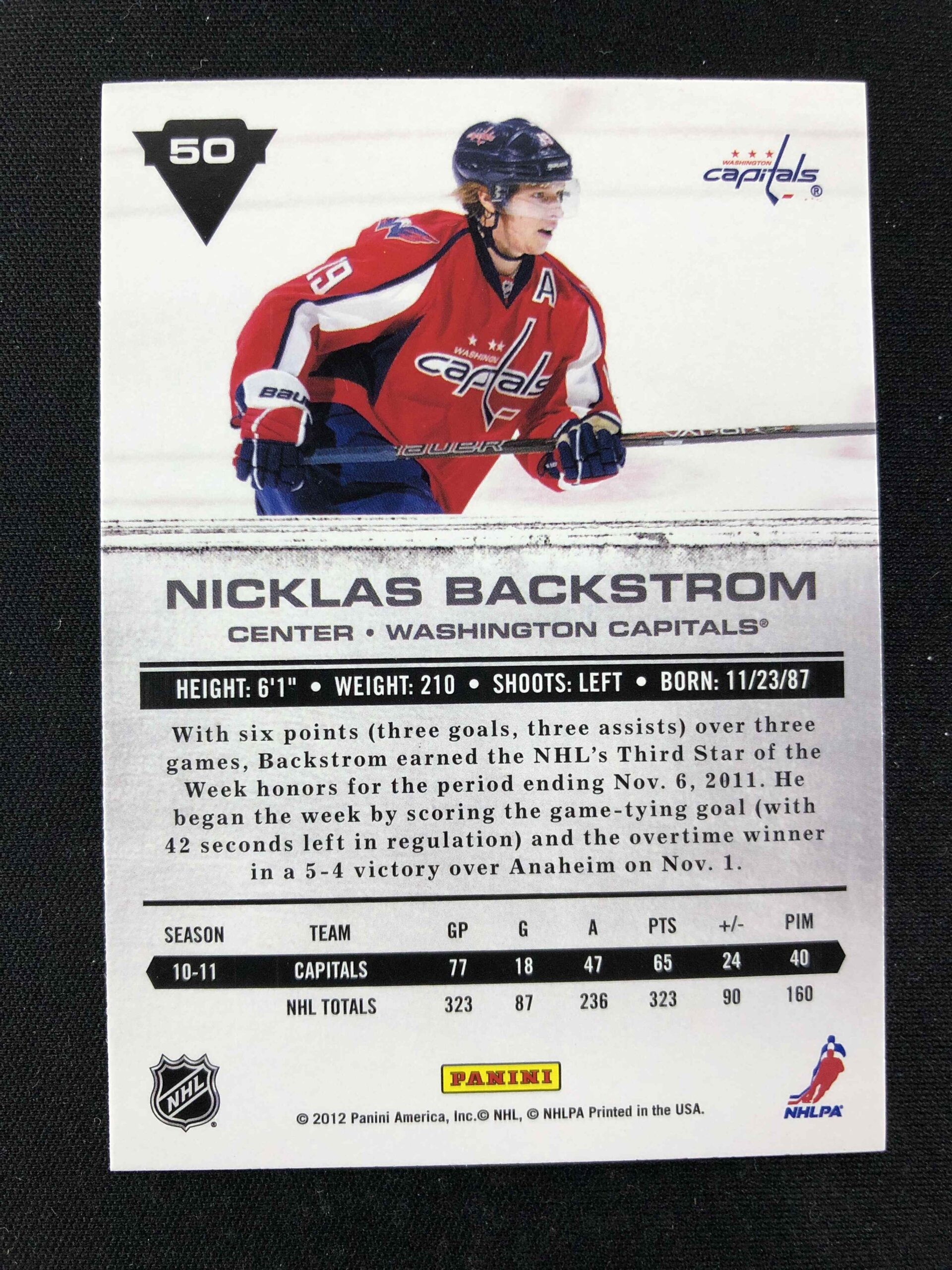 Sběratelská karta 2011/2012 Panini Titanium Base 50 Nicklas Backstrom