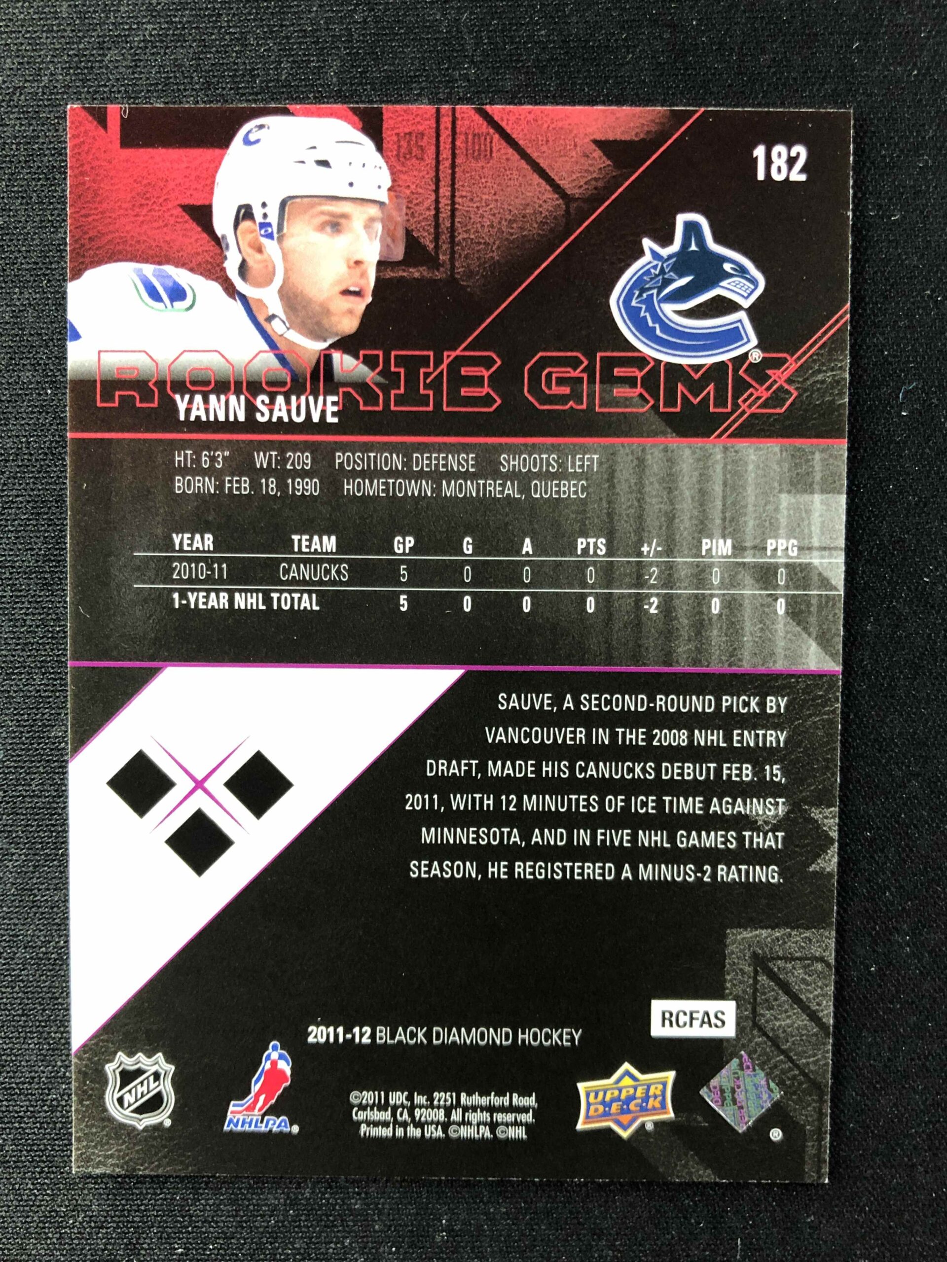 Sběratelská karta 2011/2012 Upper Deck Black Diamond Base 182 Yann Sauve