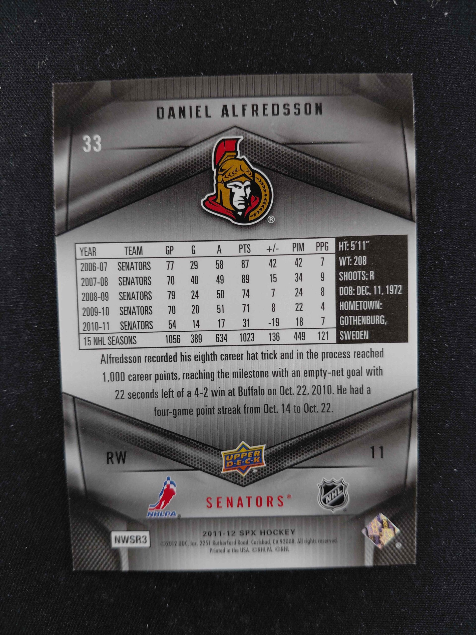Sběratelská karta 2011/2012 Upper Deck SPx Base 33 Daniel Alfredsson