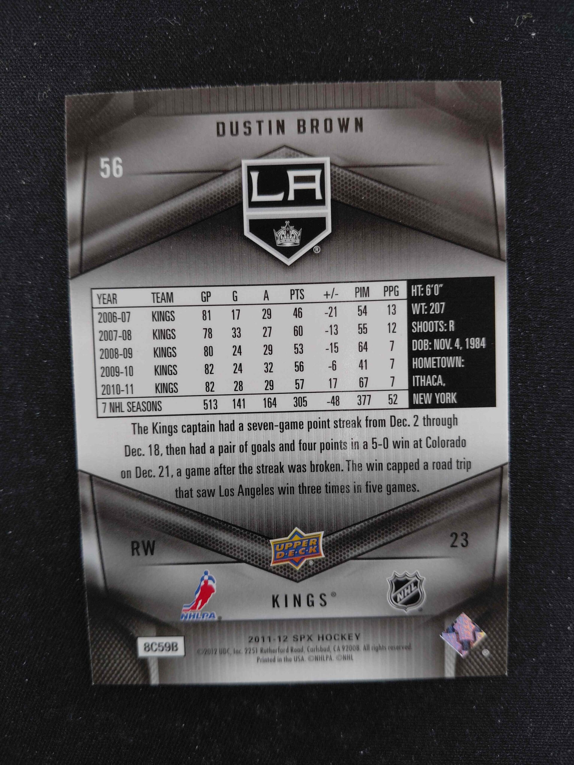 Sběratelská karta 2011/2012 Upper Deck SPx Base 56 Dustin Brown