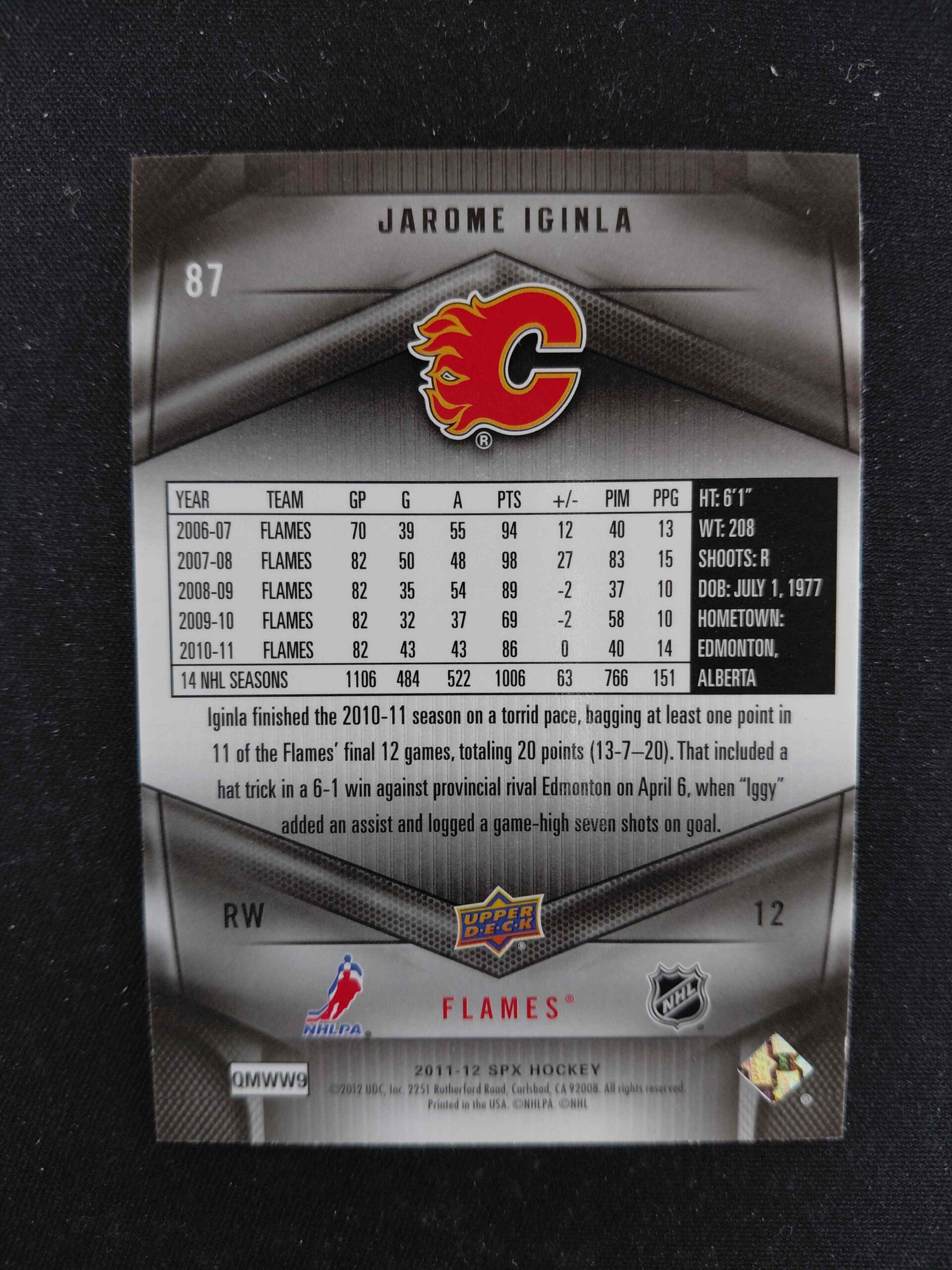 Sběratelská karta 2011/2012 Upper Deck SPx Base 87 Jarome Iginla