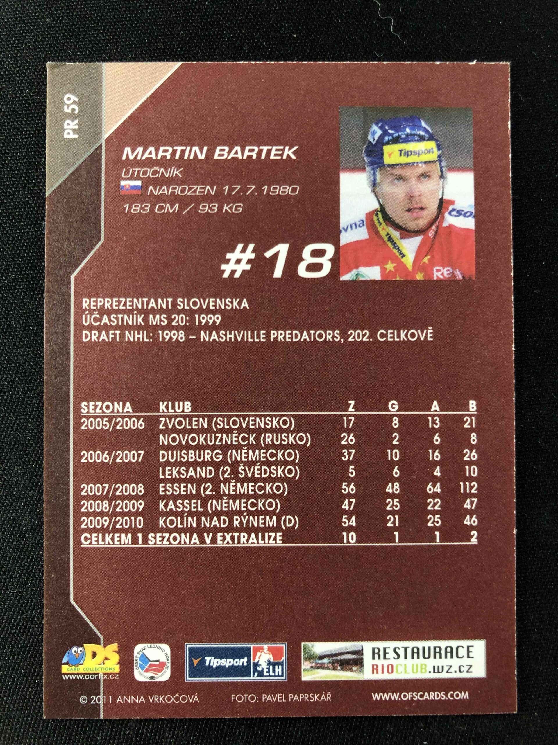 Sběratelská karta 2011 OFS Premium Gold PR 58 Tomáš Zohorna Paralel