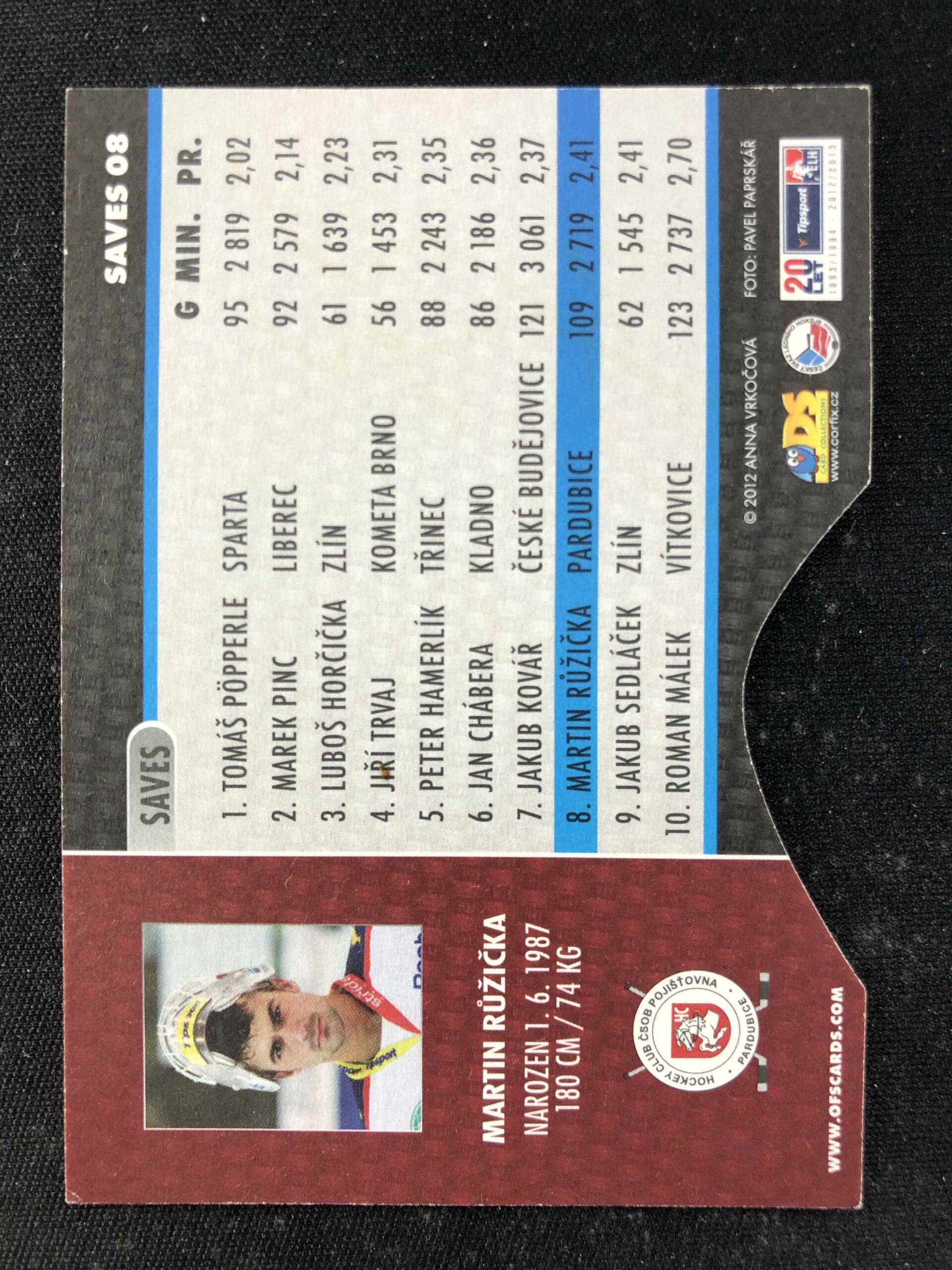 Sběratelská karta 2012/2013 OFS Plus Saves 8 Martin Růžička Inzert