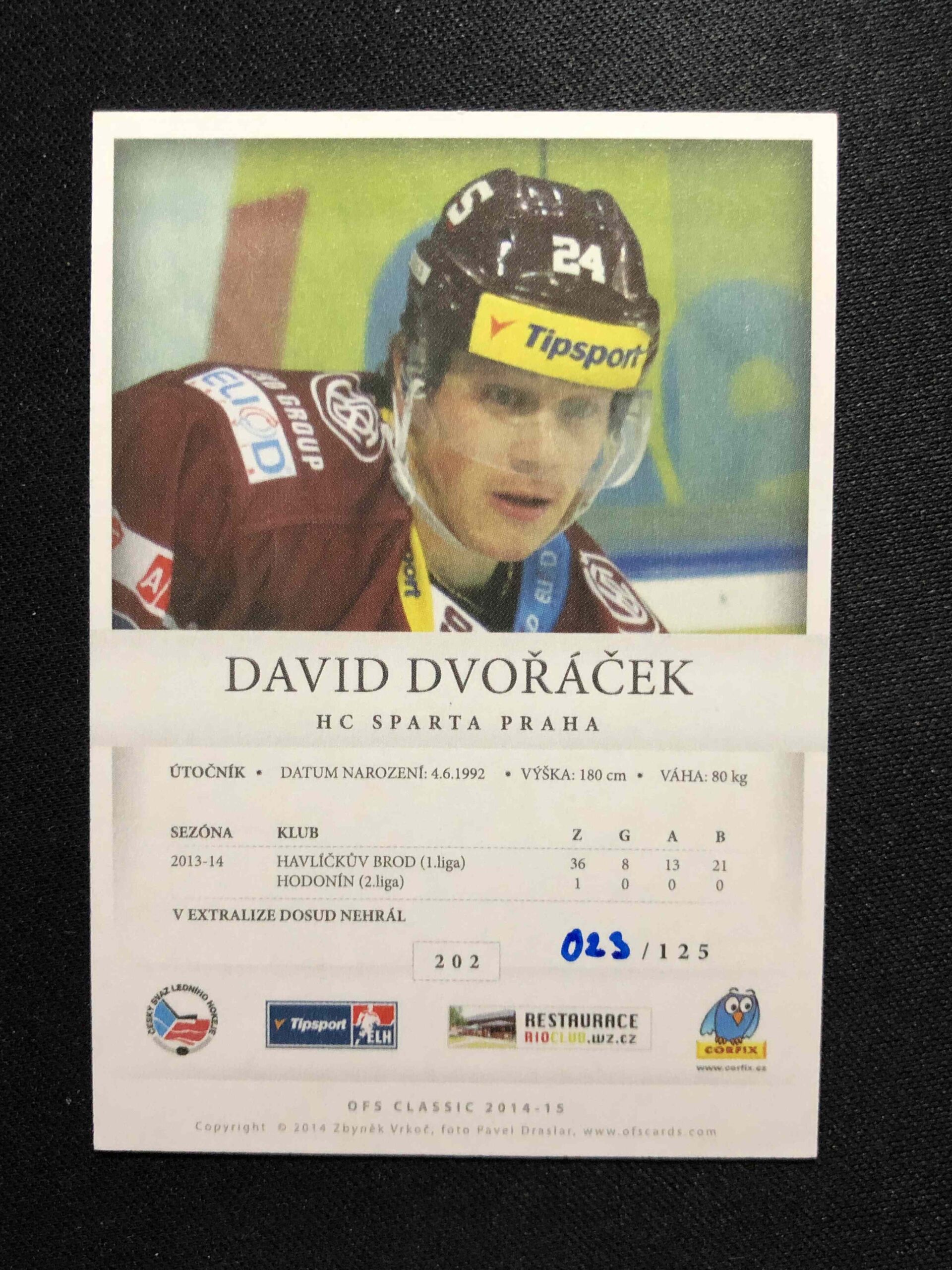 Sběratelská karta 2014/2015 OFS Classic Rainbow 202 David Dvořáček Paralel 023/125