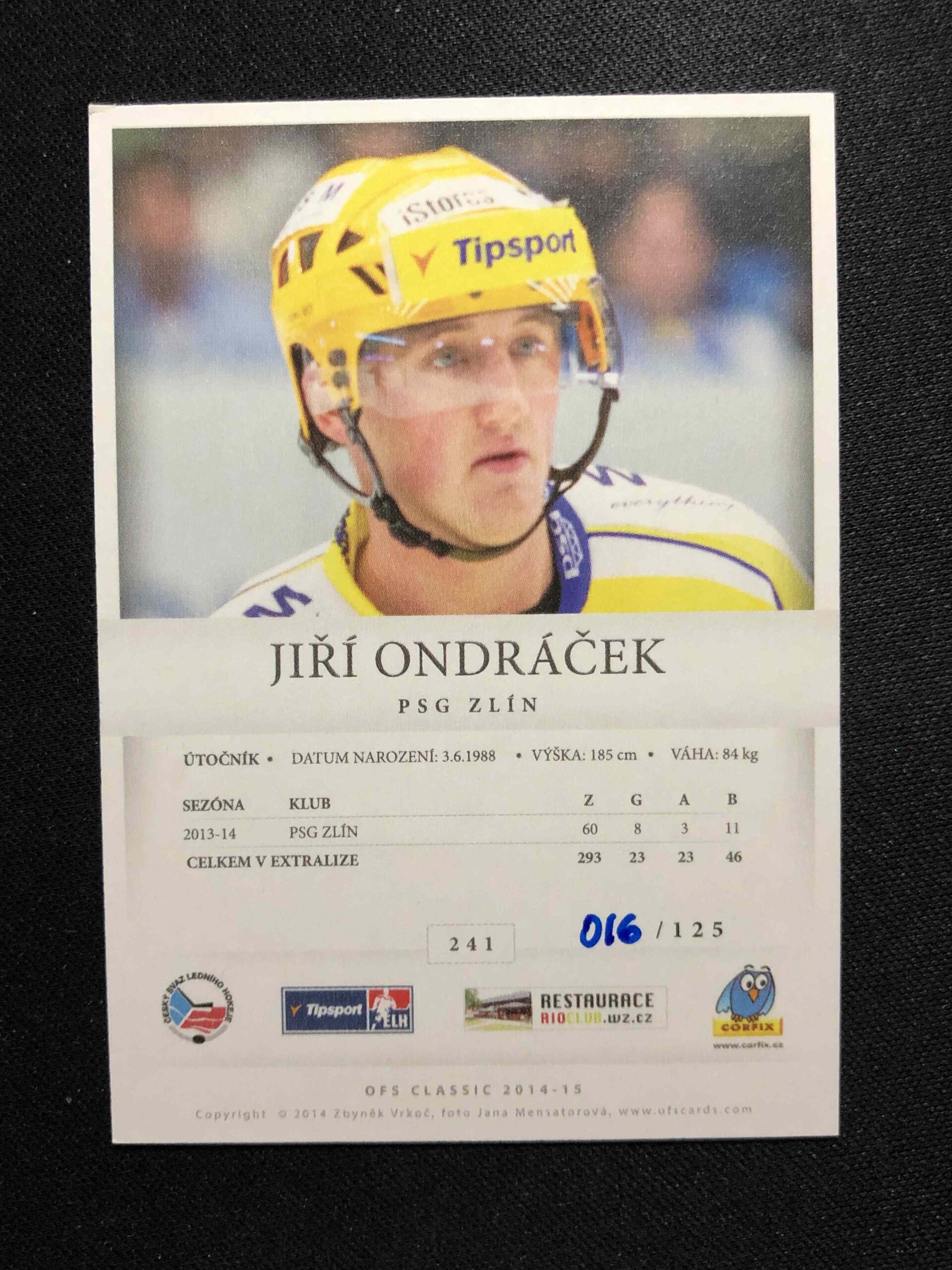 Sběratelská karta 2014/2015 OFS Classic Rainbow 241 Jiří Ondráček Paralel 016/125