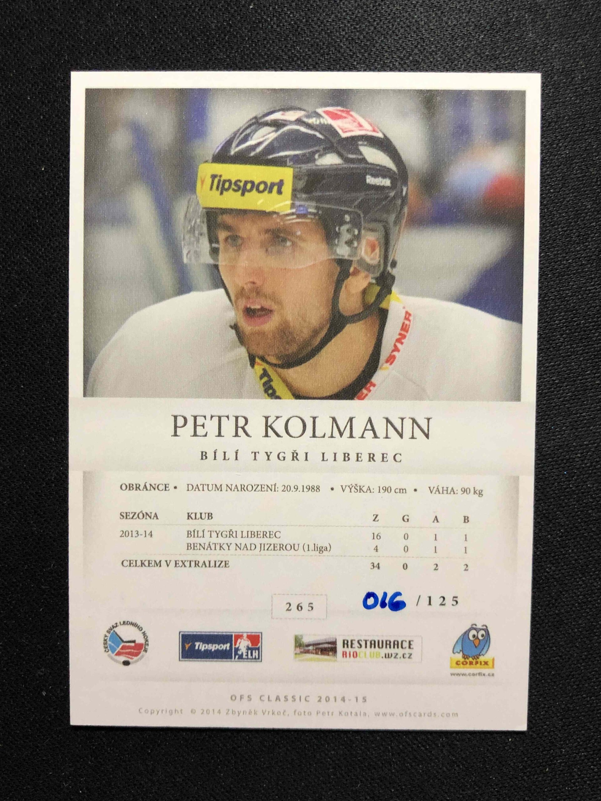 Sběratelská karta 2014/2015 OFS Classic Rainbow 265 Petr Kolmann Paralel 016/125