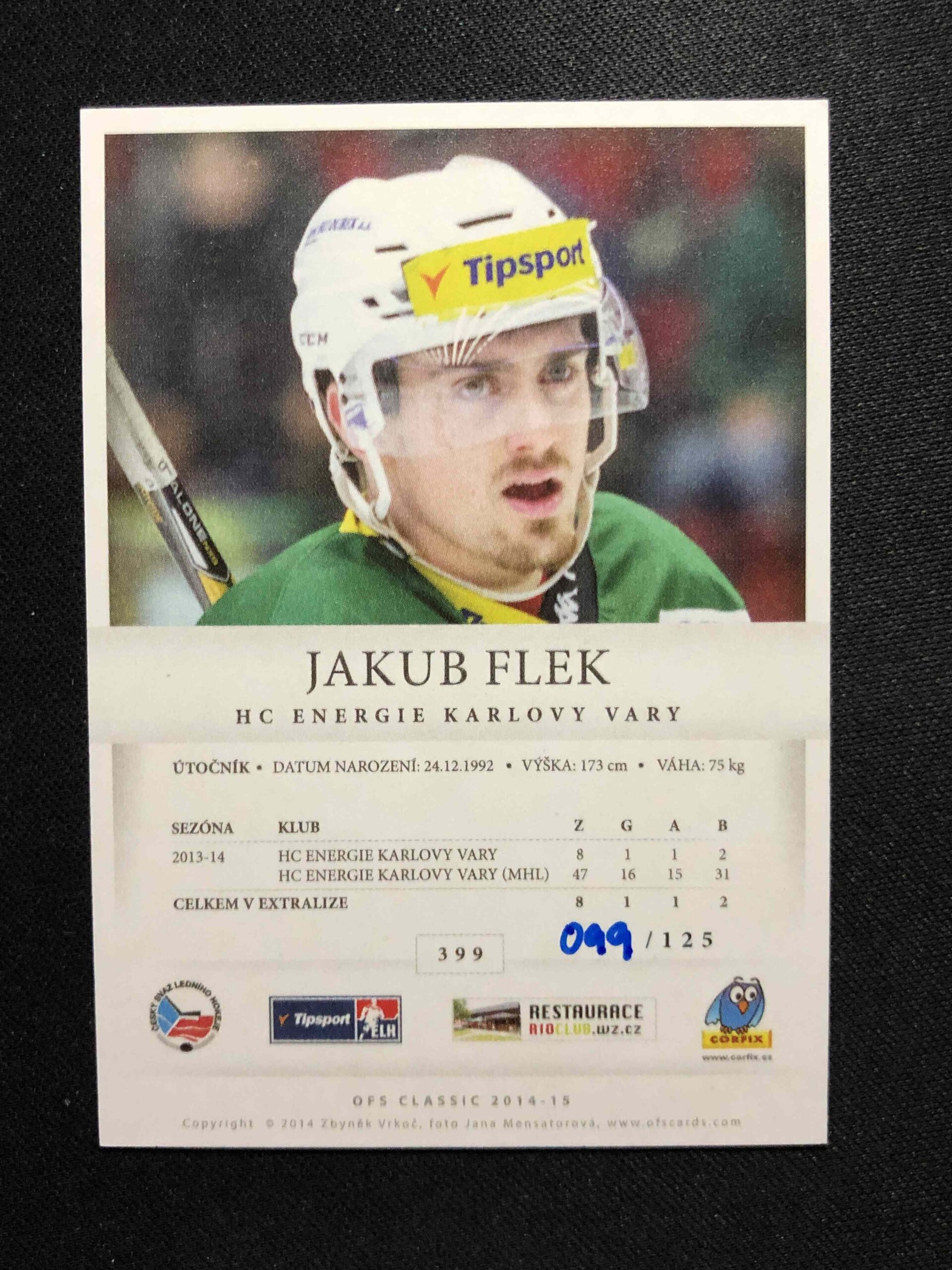 Sběratelská karta 2014/2015 OFS Classic Rainbow 399 Jakub Flek Paralel 099/125