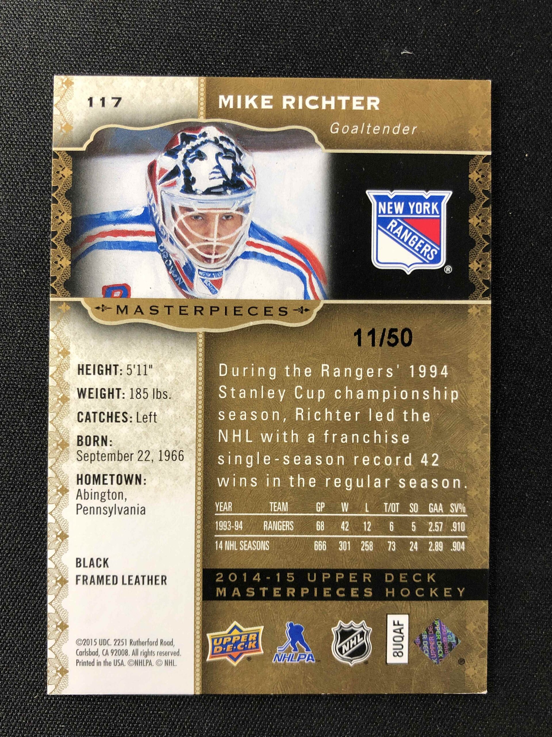 Sběratelská karta 2014/2015 Upper Deck Masterpieces Black Framed 117 Mike Richter Paralel 11/50