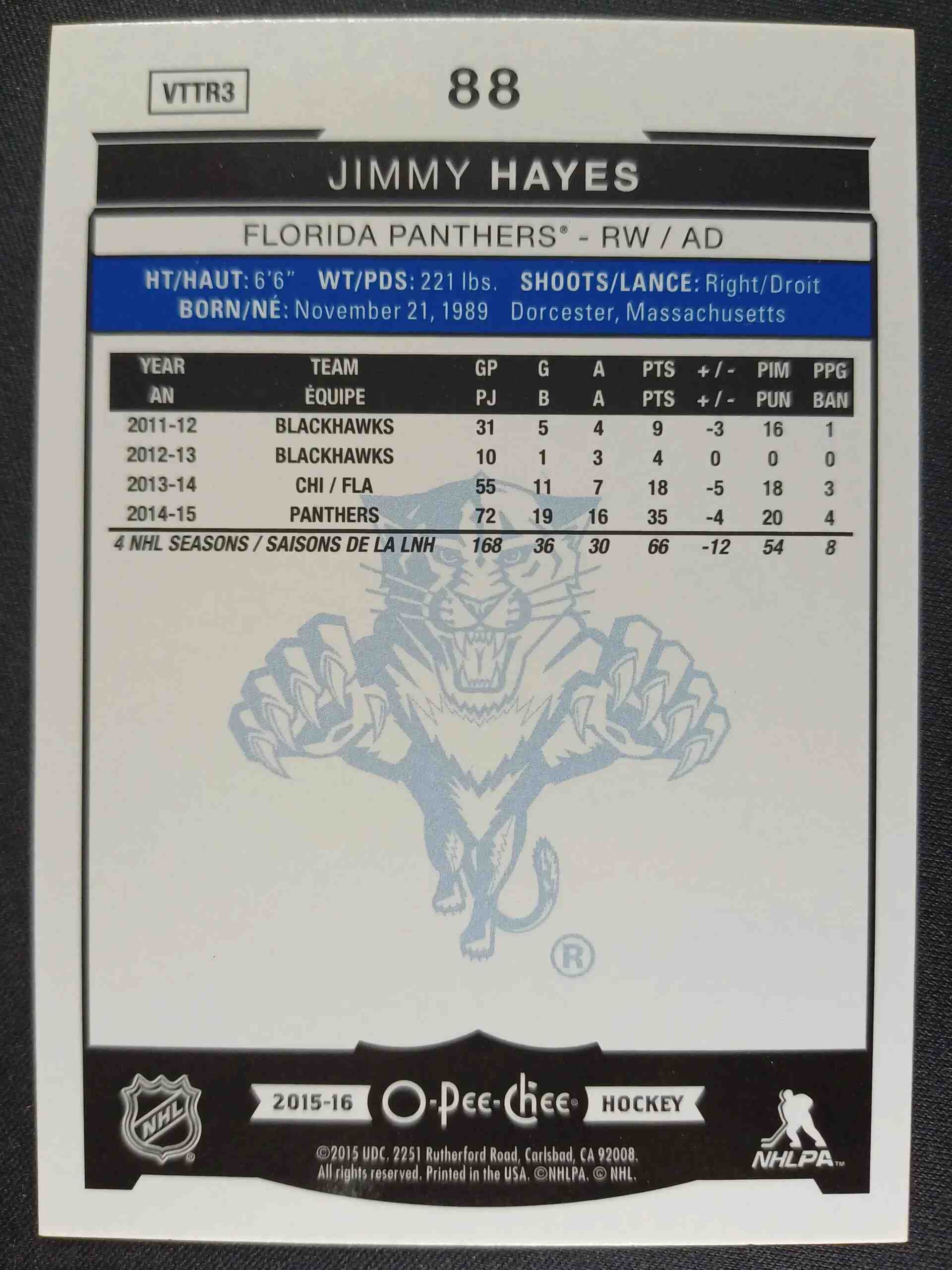 Sběratelská karta 2014/2015 Upper Deck O-Pee-Chee Rainbow Foil 88 Jimmy Hayes Paralel