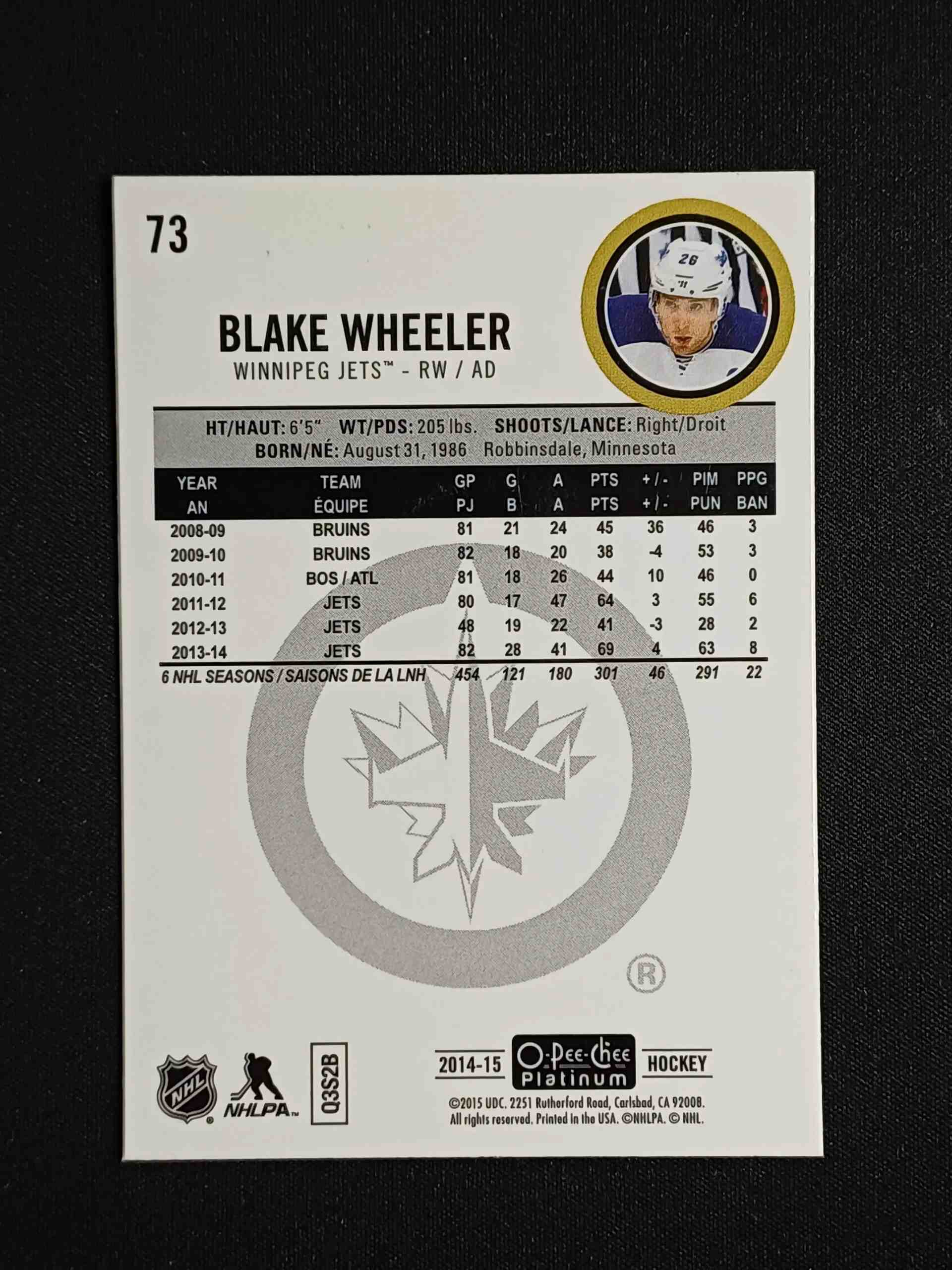 Sběratelská karta 2014/2015 Upper Deck OPC Platinum Base 73 Blake Wheeler