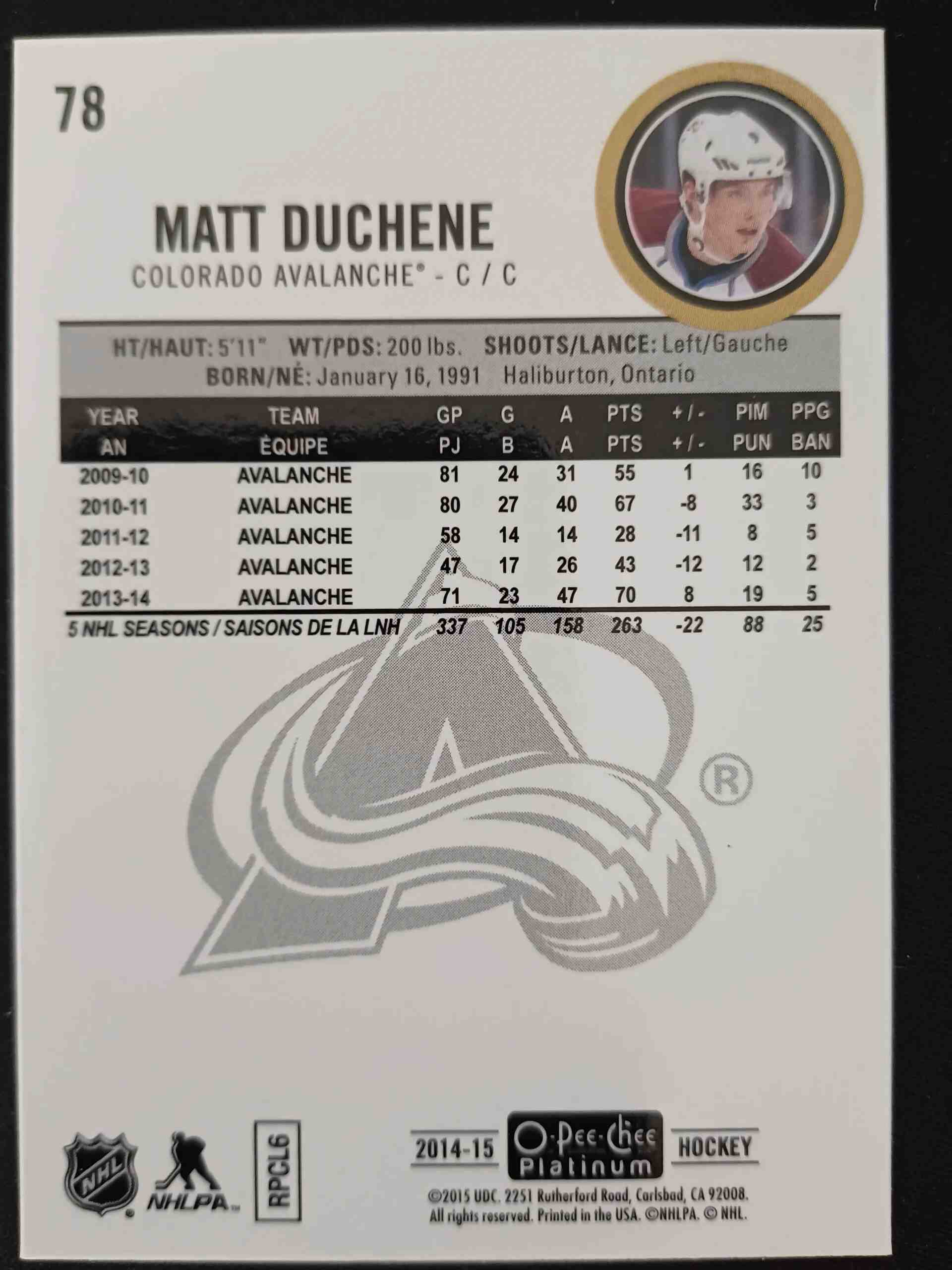 Sběratelská karta 2014/2015 Upper Deck OPC Platinum Platinum Traxx 78 Matt Duchene Paralel
