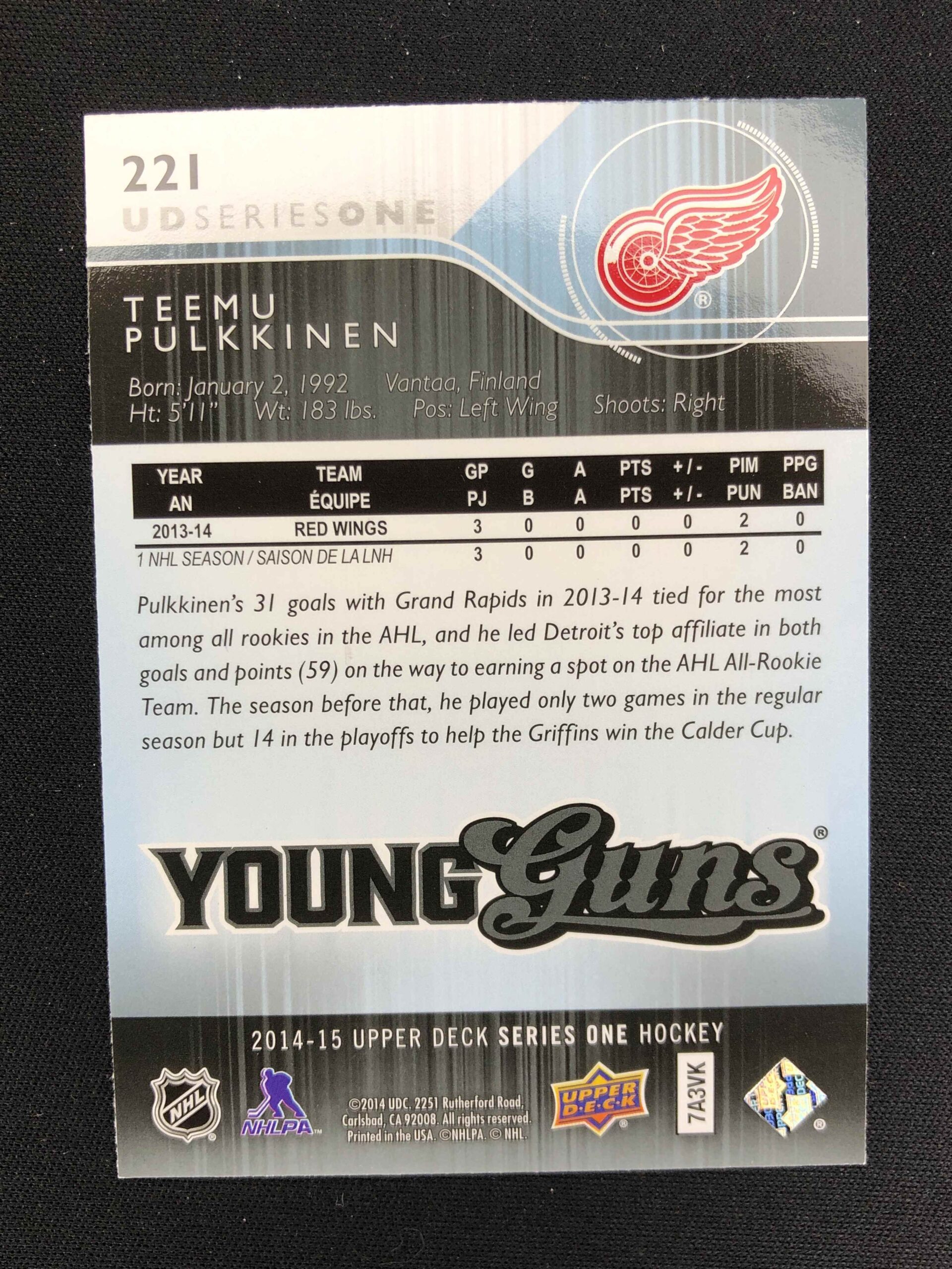 2014/2015 Upper Deck Series 1 Young Guns 221 Teemu Pulkkinen Inzert