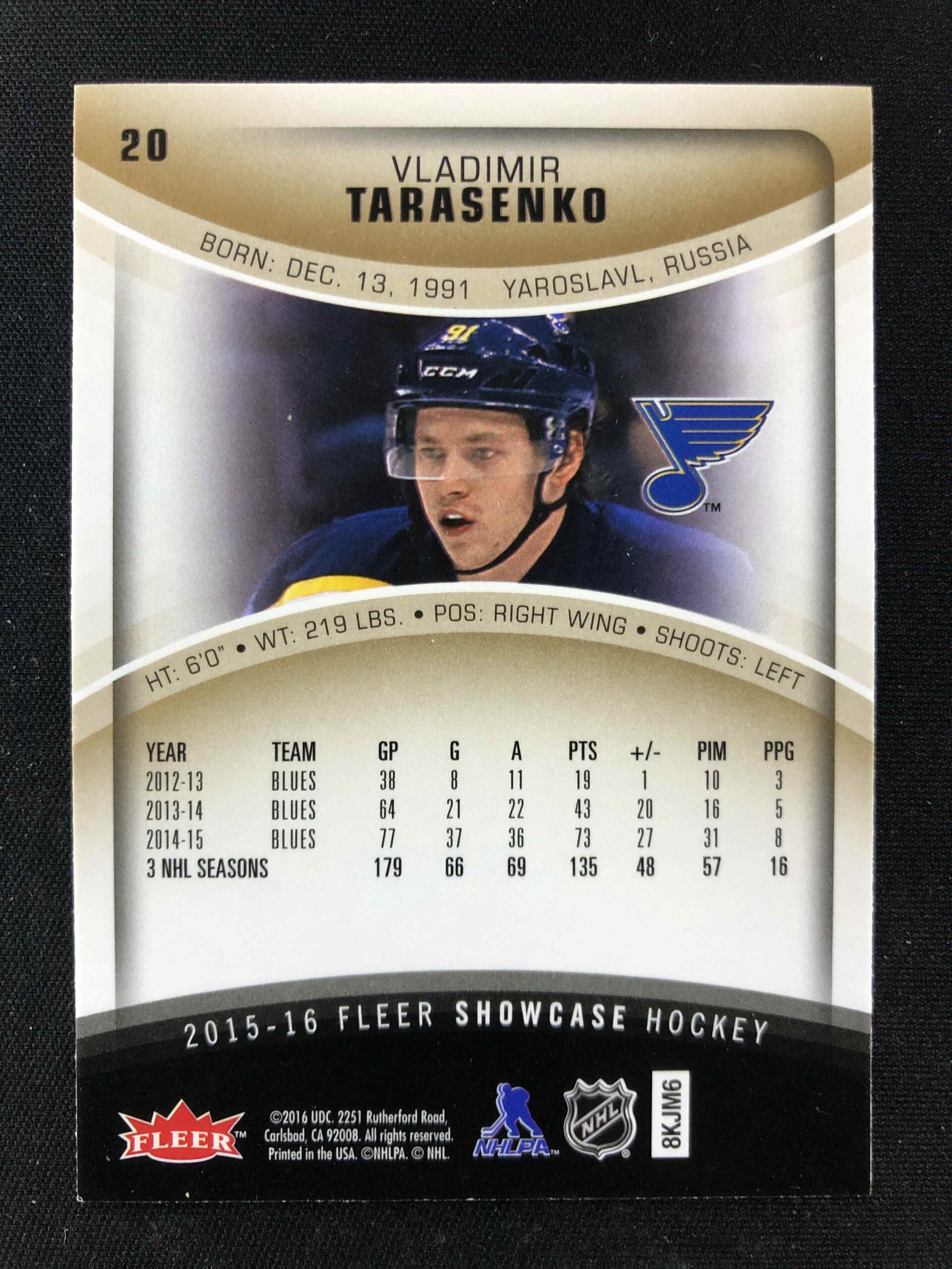 Sběratelská karta 2015/2016 Fleer Showcase Base 20 Vladimir Tarasenko