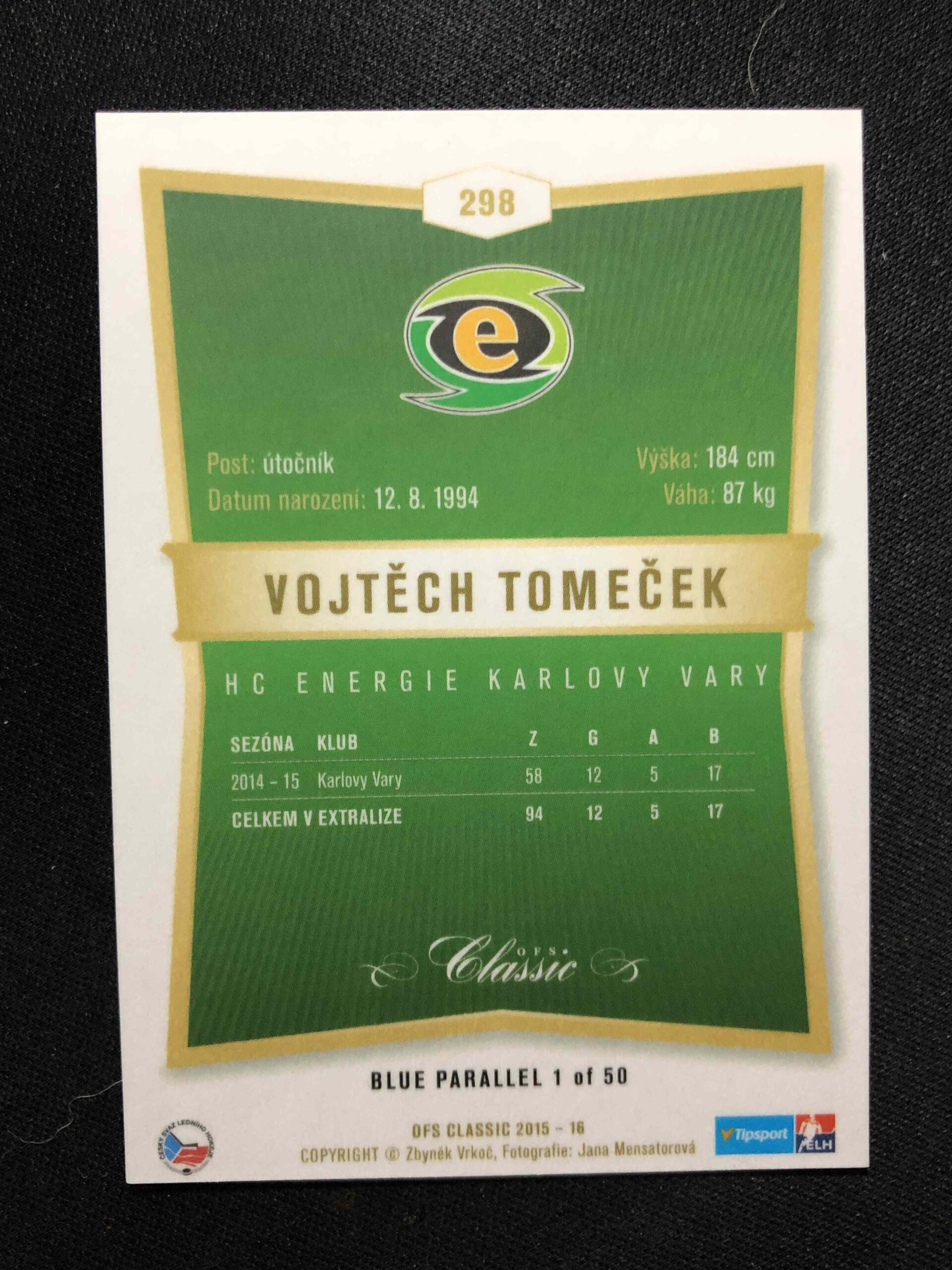 Sběratelská karta 2015/2016 OFS Classic Blue 298 Vojtěch Tomeček Paralel /50