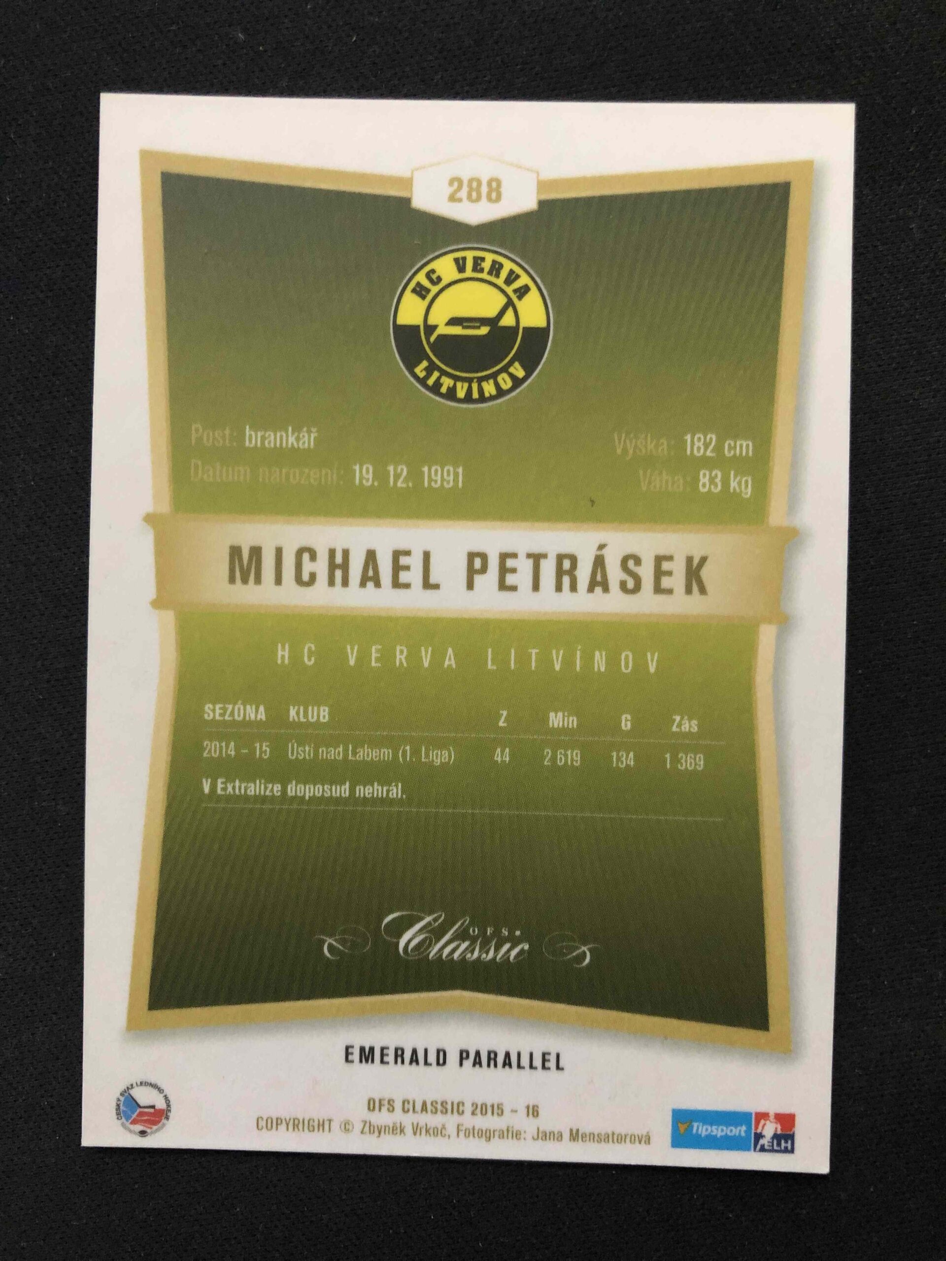Sběratelská karta 2015/2016 OFS Classic Emerald 288 Michael Petrásek Paralel /25