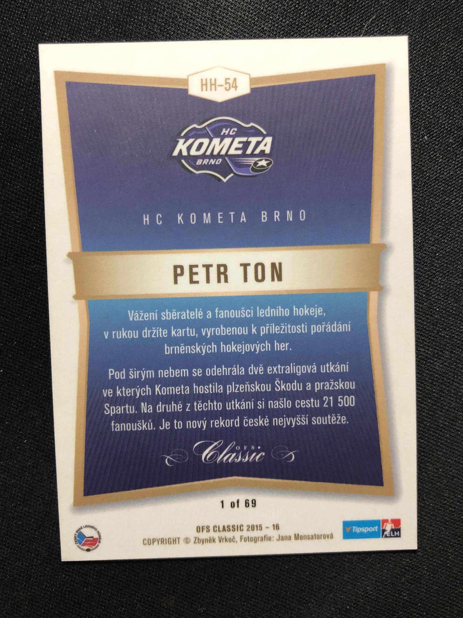 Sběratelská karta 2015/2016 OFS Classic Hokejové Hry HH-54 Petr Ton Inzert /69