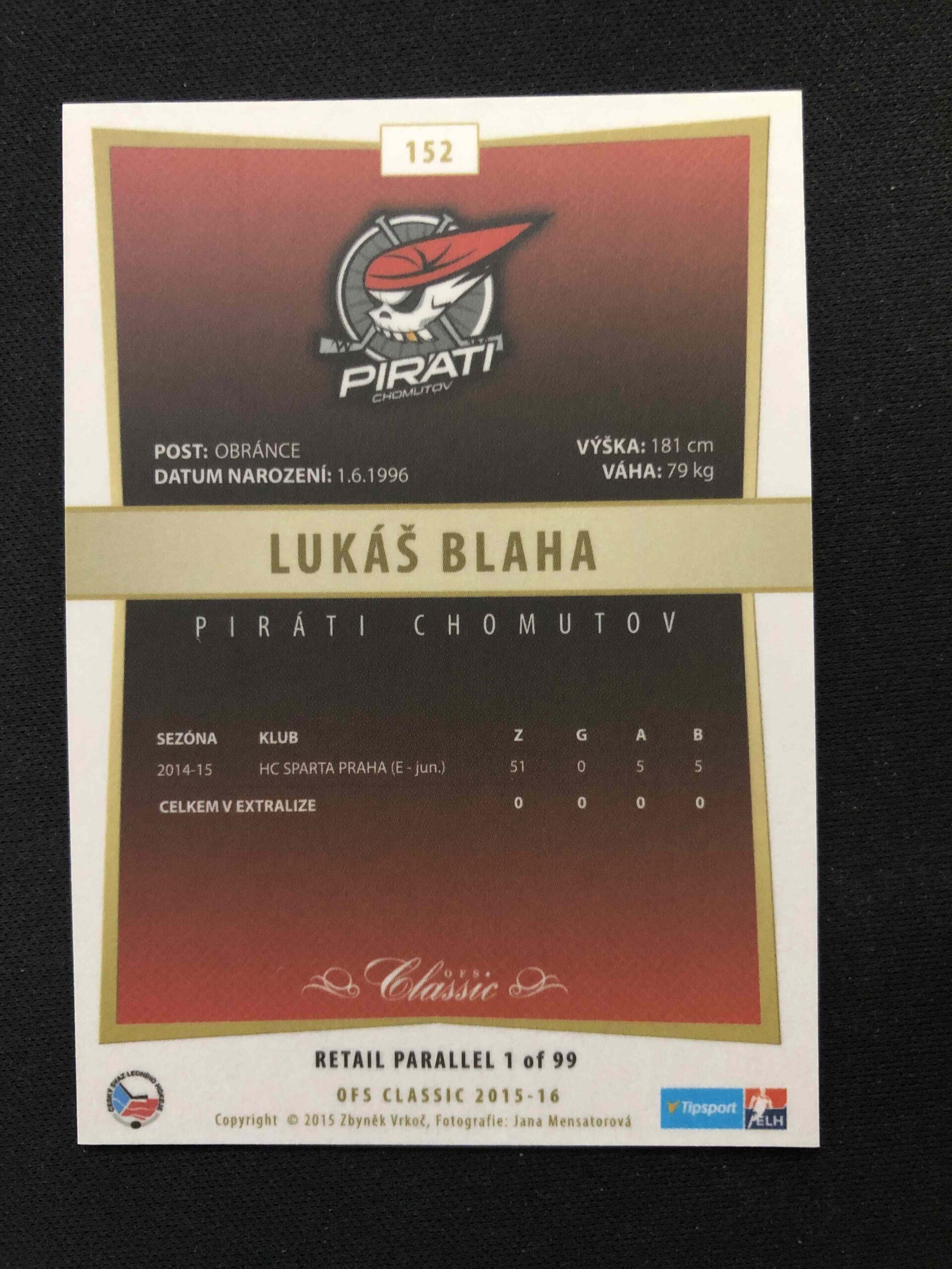 Sběratelská karta 2015/2016 OFS Classic Retail 152 Lukáš Bláha Paralel /99