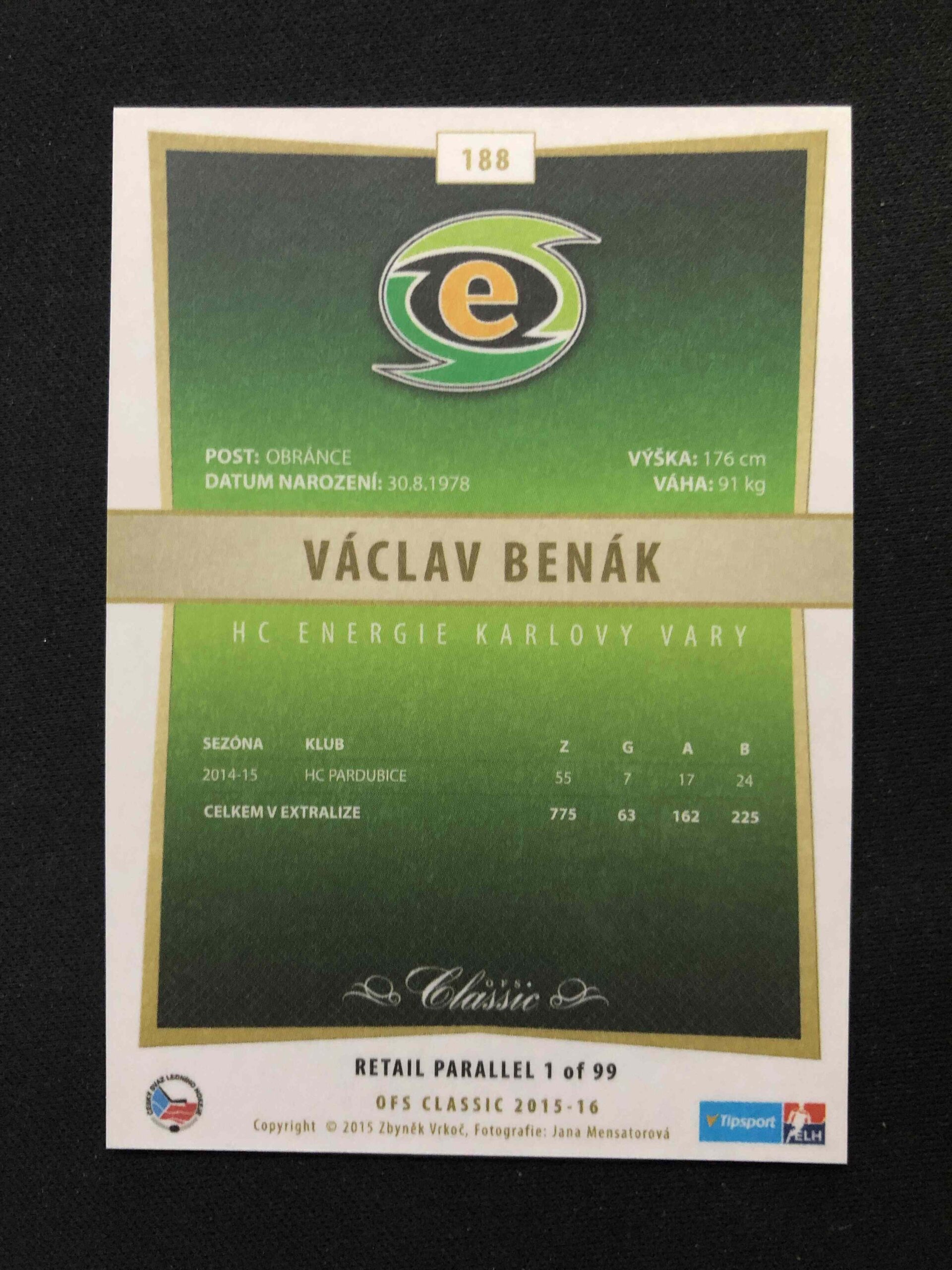Sběratelská karta 2015/2016 OFS Classic Retail 188 Václav Benák Paralel /99