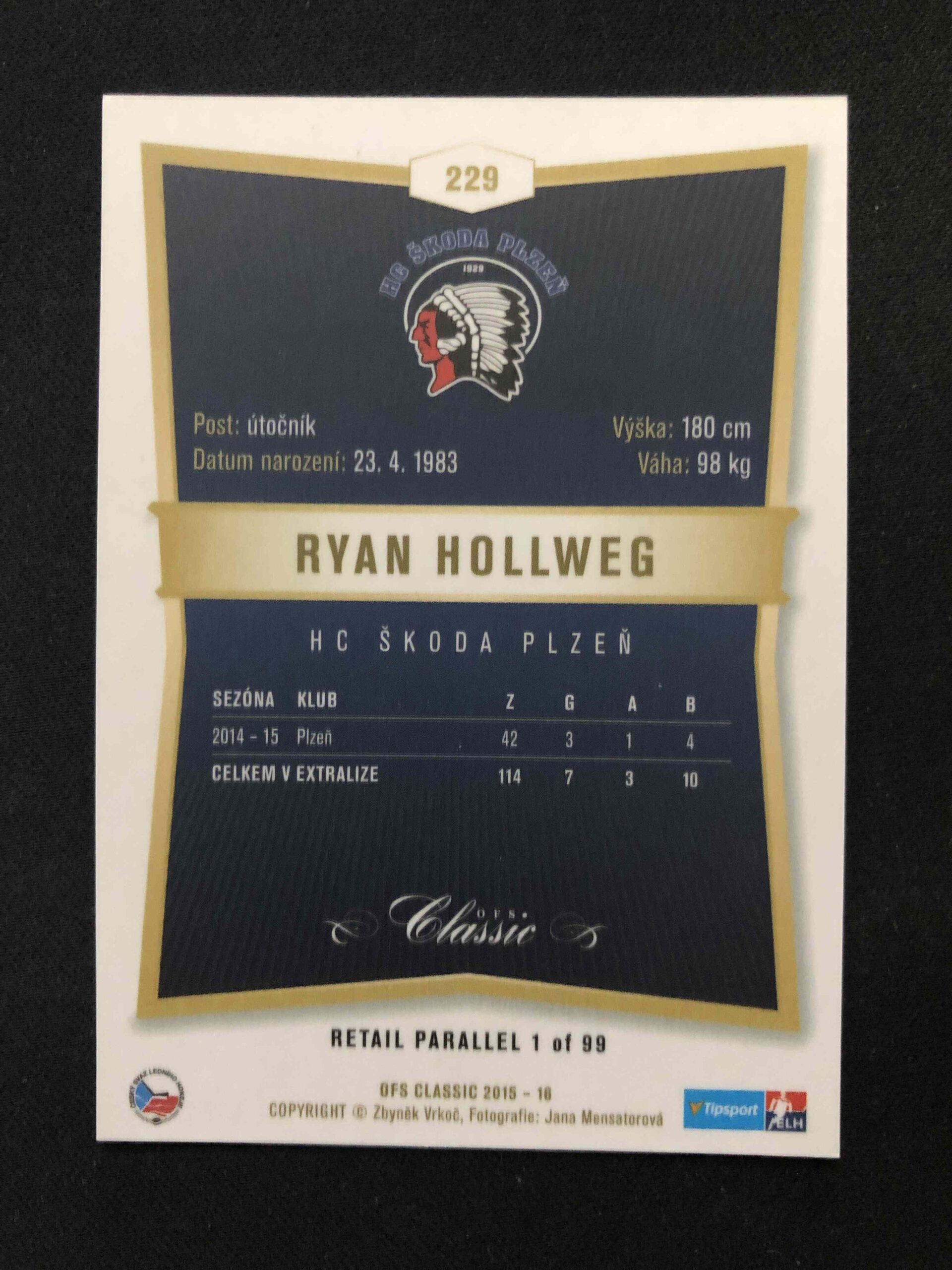 Sběratelská karta 2015/2016 OFS Classic Retail 229 Ryan Hollweg Paralel /99