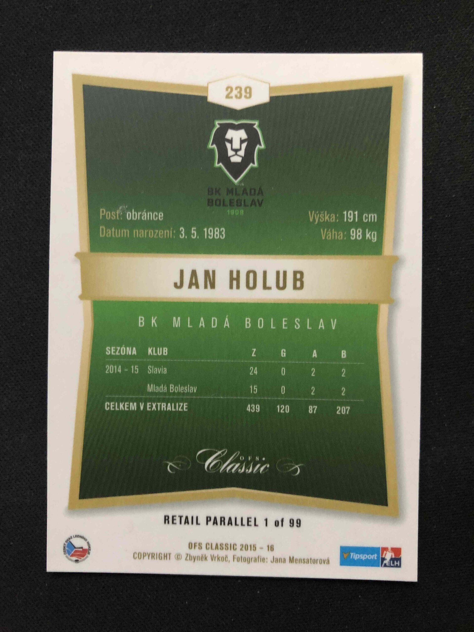 Sběratelská karta 2015/2016 OFS Classic Retail 239 Jan Holub Paralel /99