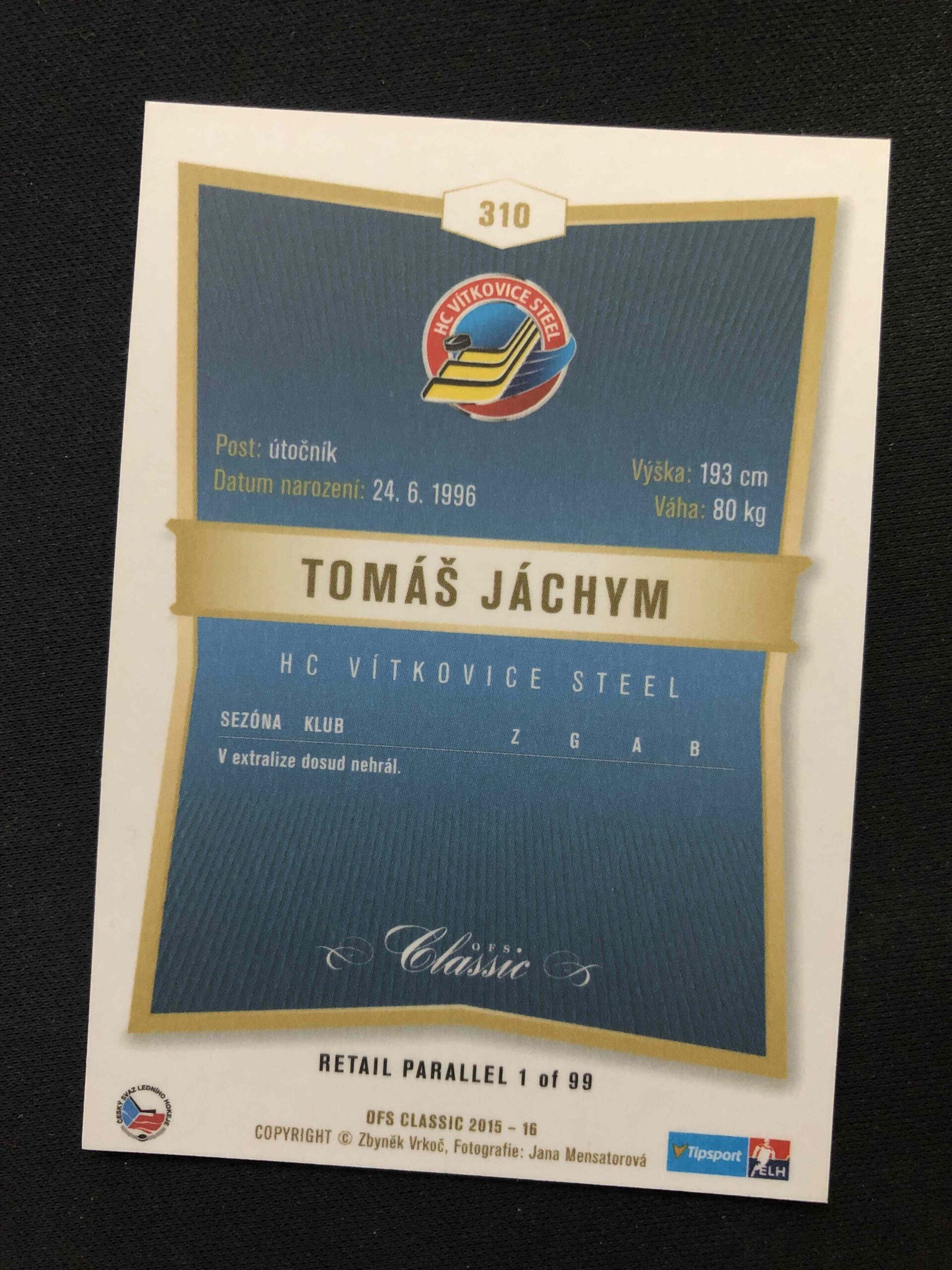 Sběratelská karta 2015/2016 OFS Classic Retail 310 Tomáš Jáchym Paralel /99