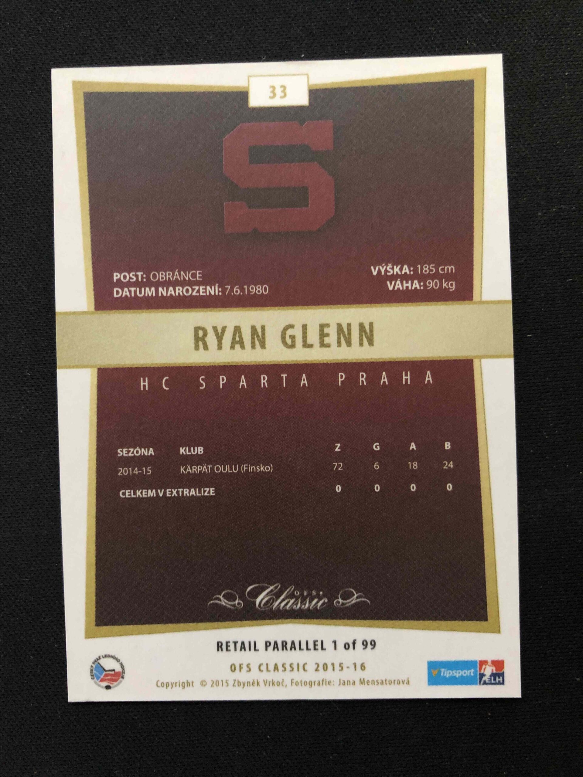 Sběratelská karta 2015/2016 OFS Classic Retail 33 Ryan Glenn Paralel /99