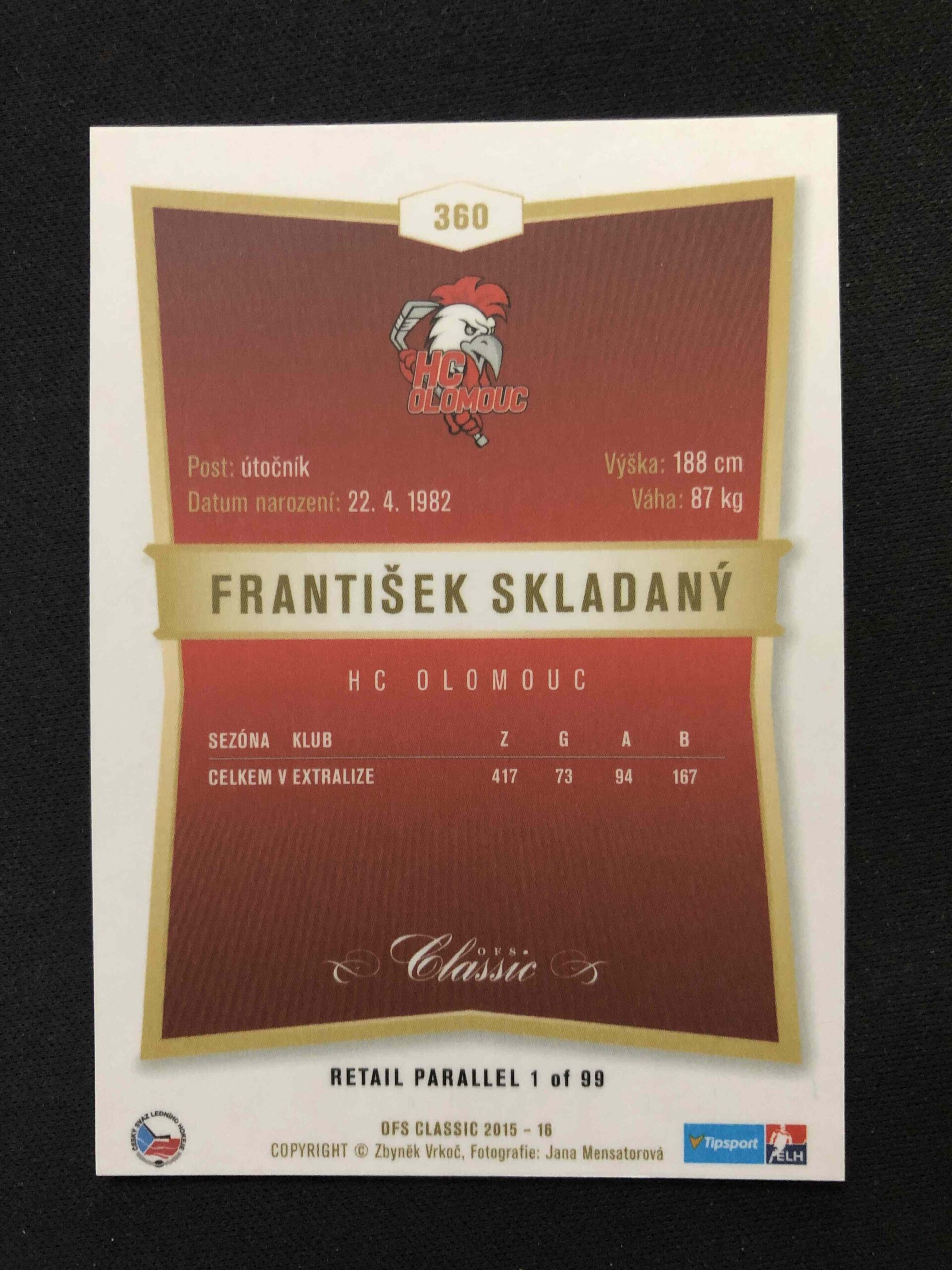 Sběratelská karta 2015/2016 OFS Classic Retail 360 František Skladaný Paralel /99