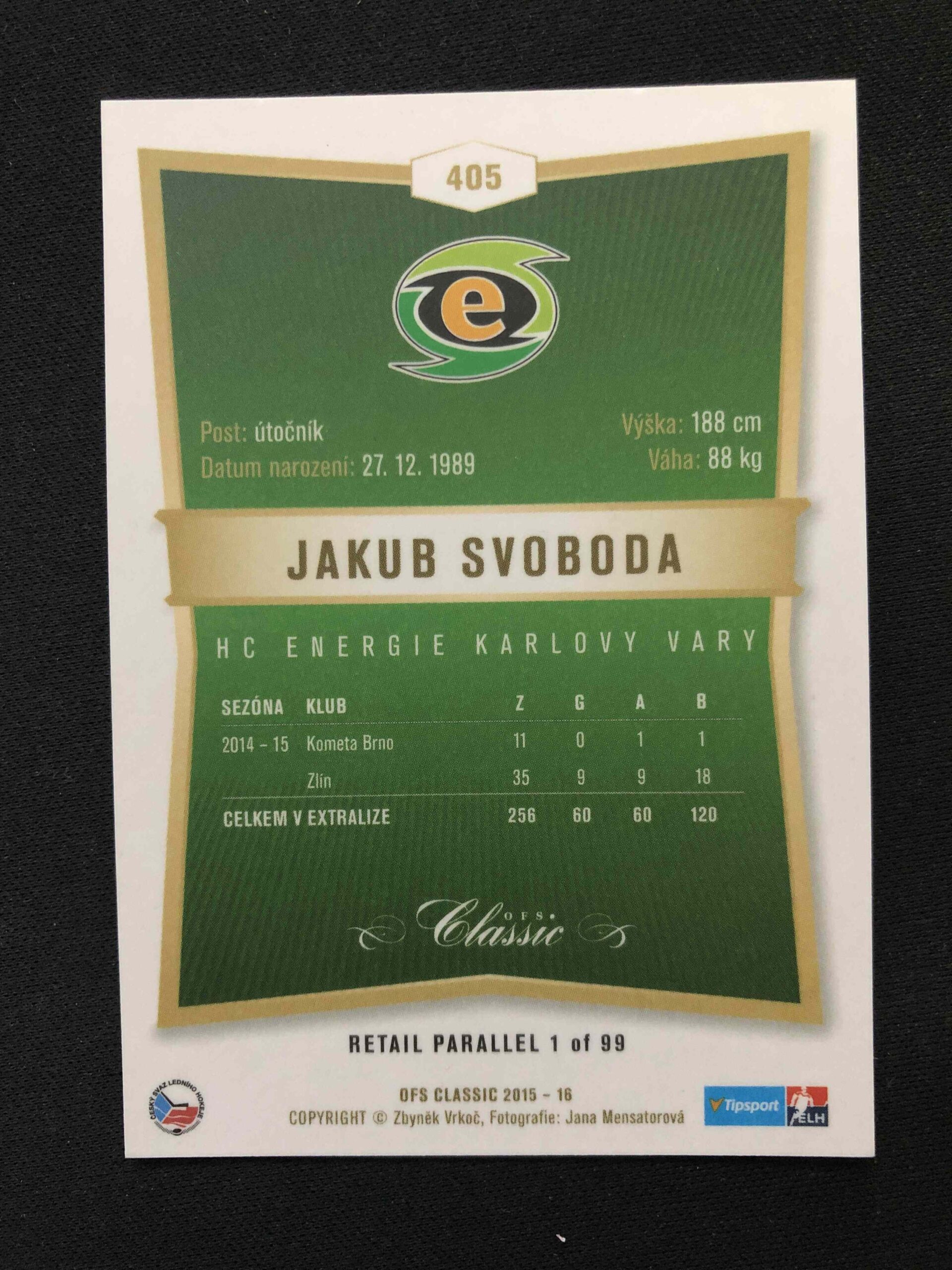 Sběratelská karta 2015/2016 OFS Classic Retail 405 Jakub Svoboda Paralel /99