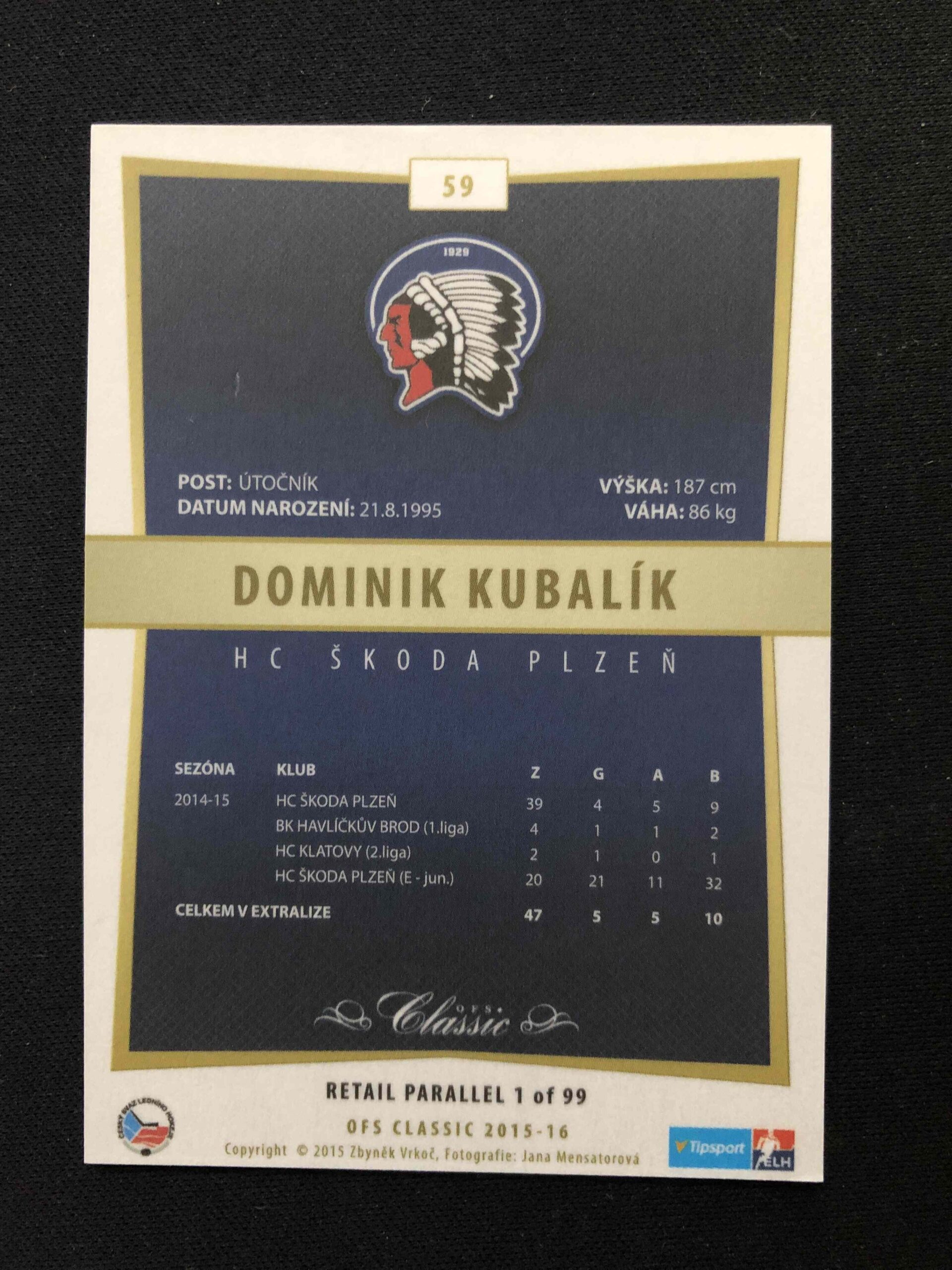 Sběratelská karta 2015/2016 OFS Classic Retail 59 Dominik Kubalik Paralel /99