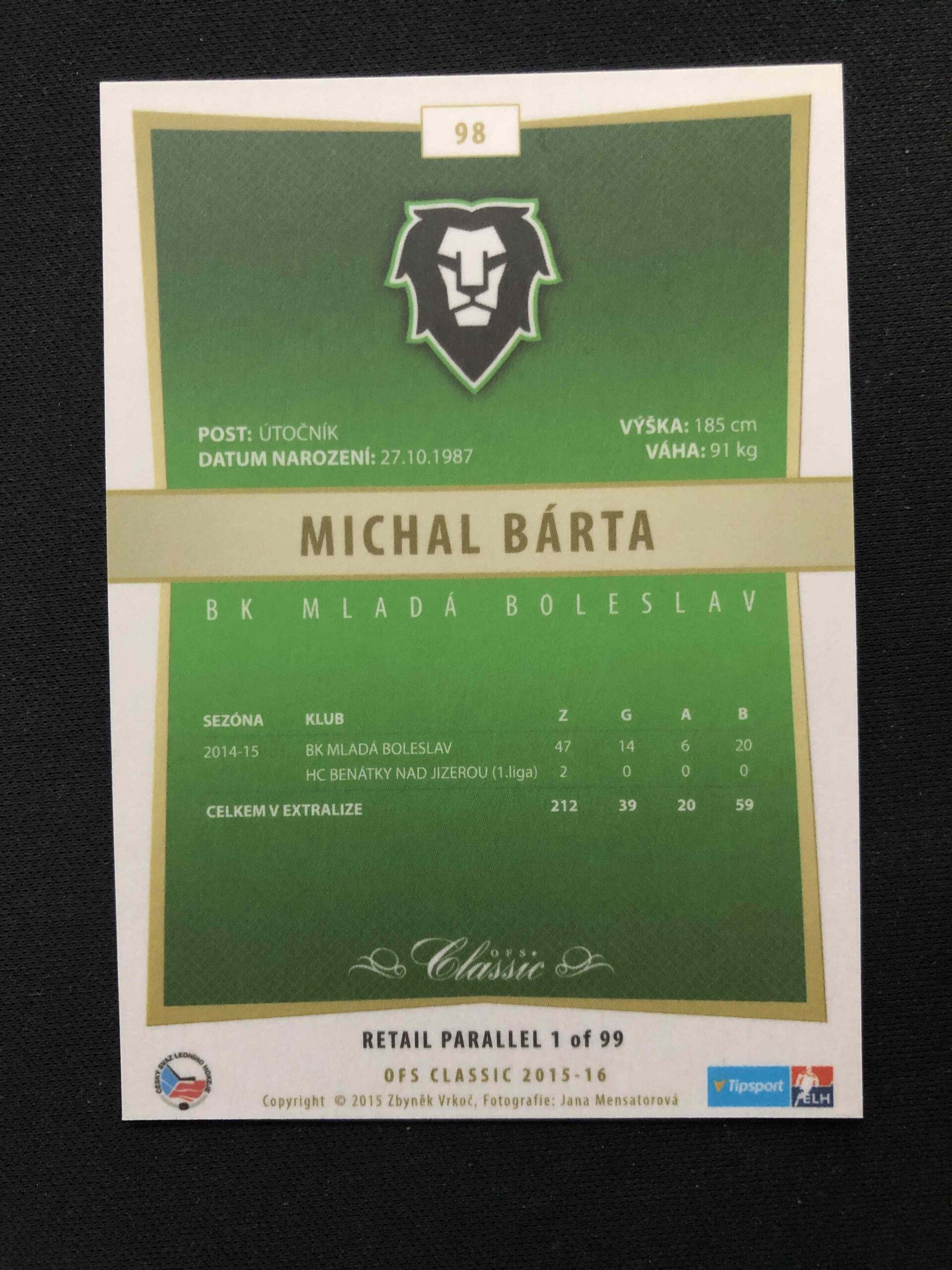 Sběratelská karta 2015/2016 OFS Classic Retail 98 Michal Bárta Paralel /99