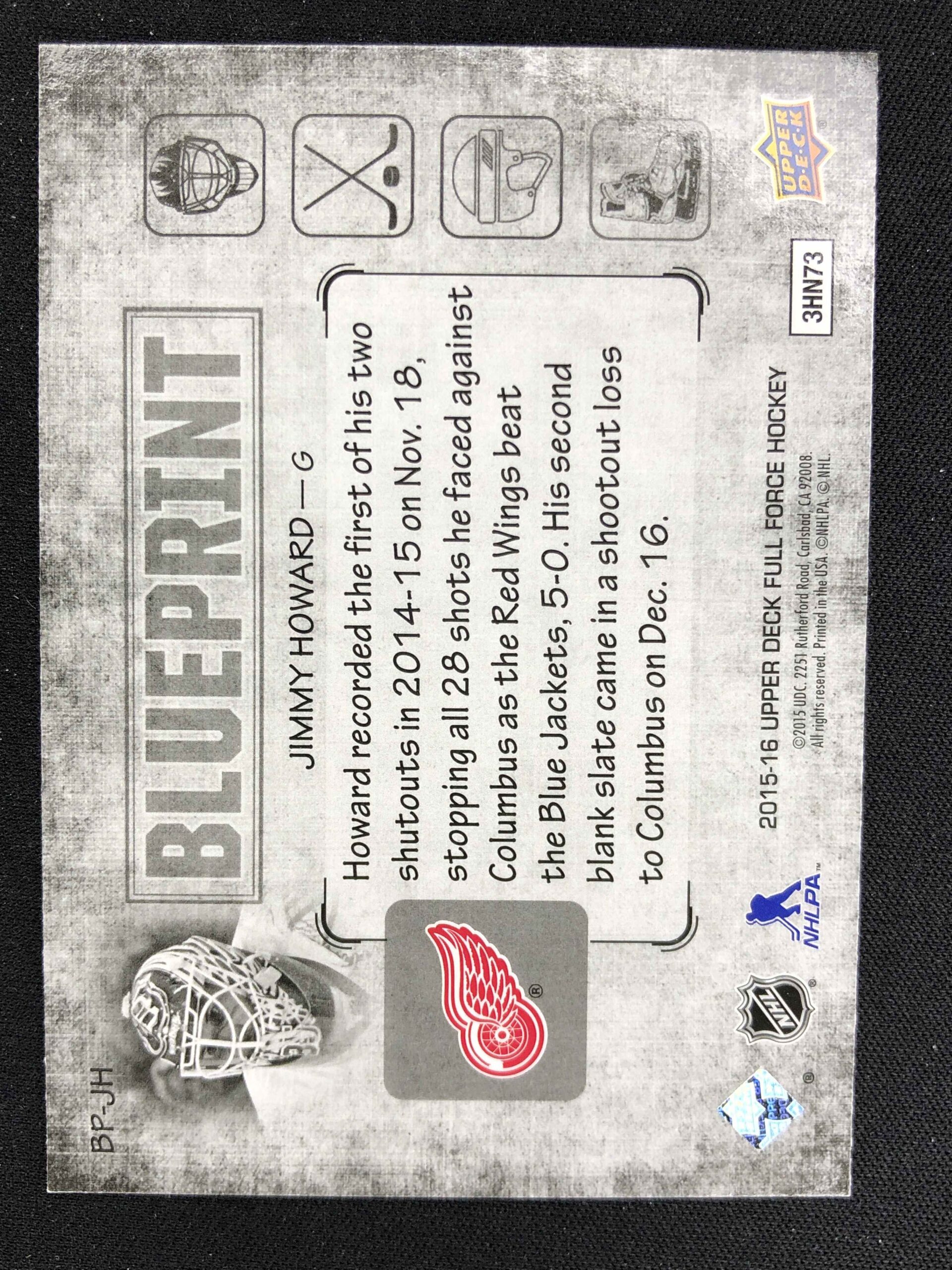 2015/2016 Upper Deck Full Force Blueprint BP-JH Jimmy Howard Inzert
