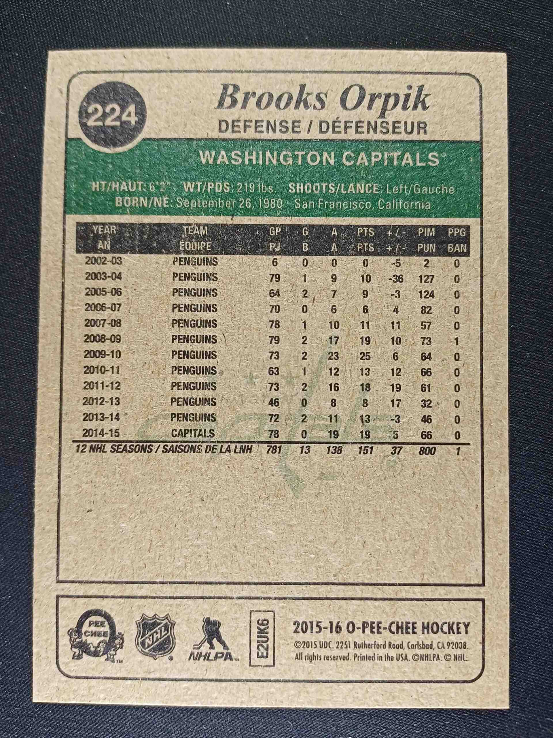 Sběratelská karta 2015/2016 Upper Deck O-Pee-Chee Retro 224 Brooks Orpik Paralel