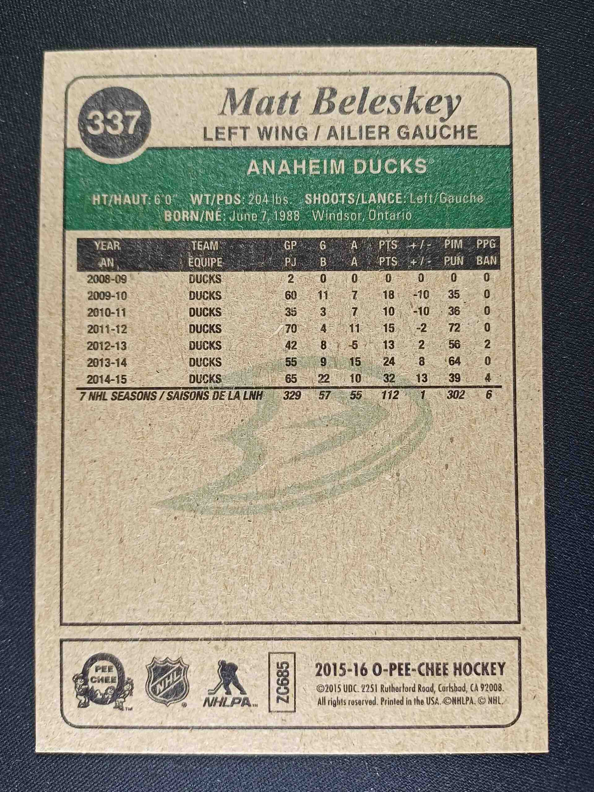 2015/2016 Upper Deck O-Pee-Chee Retro 337 Matt Beleskey Paralel
