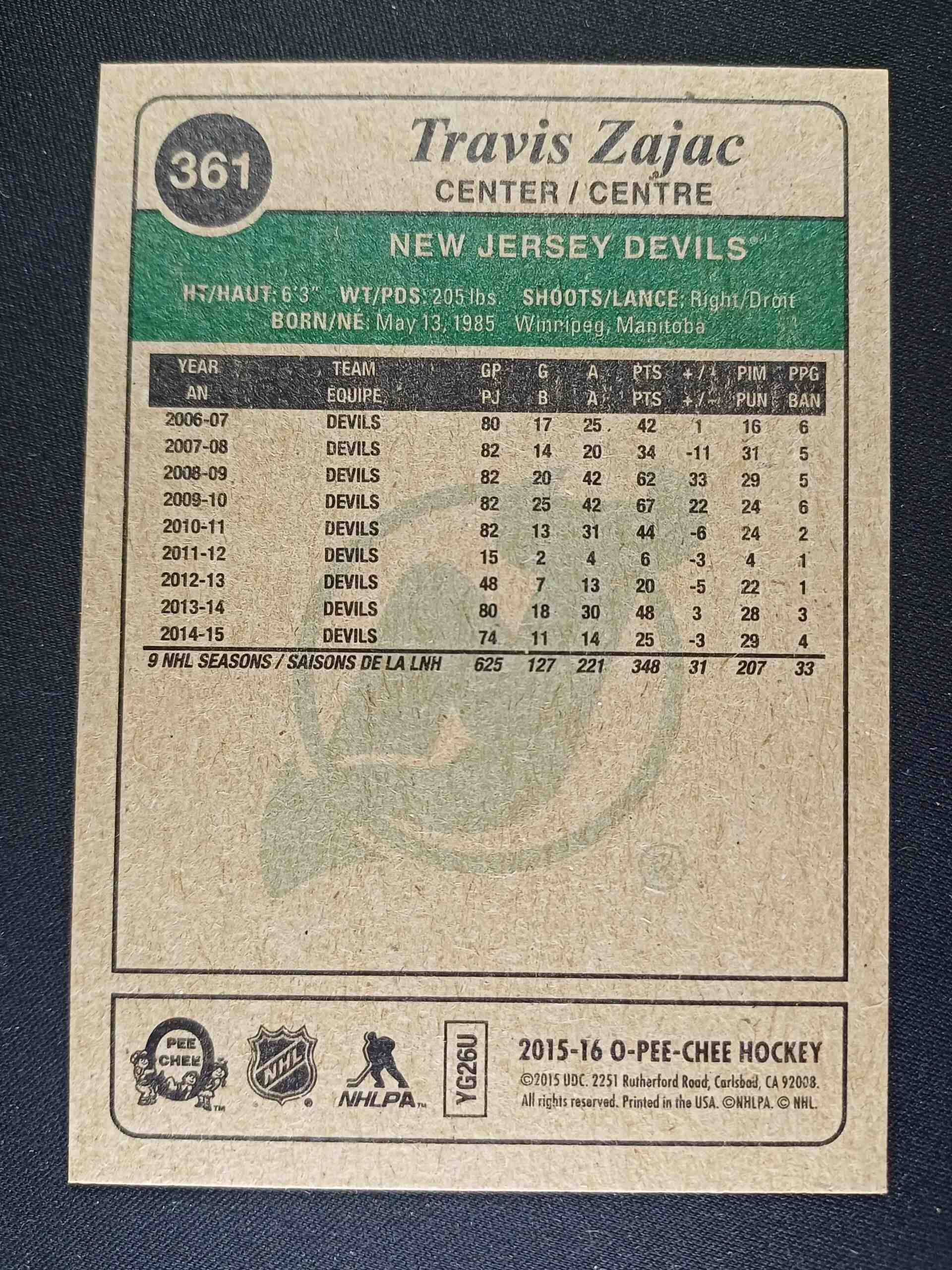 2015/2016 Upper Deck O-Pee-Chee Retro 361 Travis Zajac Paralel