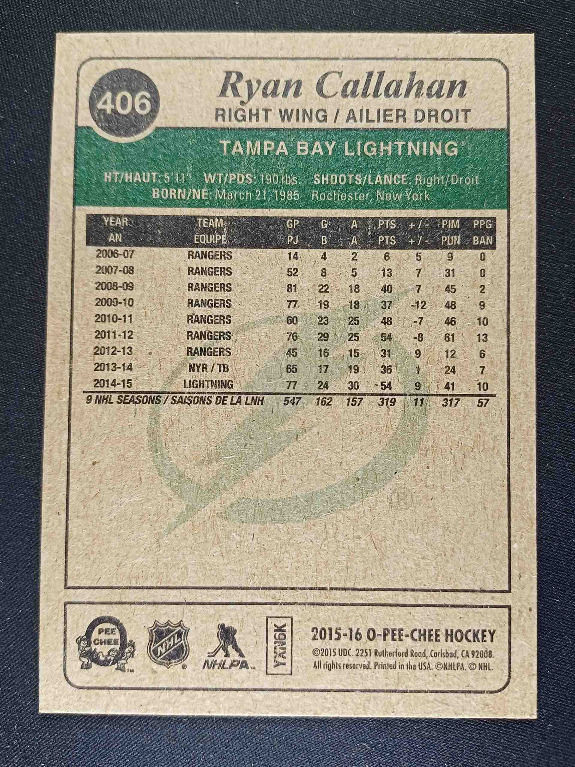 Sběratelská karta 2015/2016 Upper Deck O-Pee-Chee Retro 406 Ryan Callahan Paralel