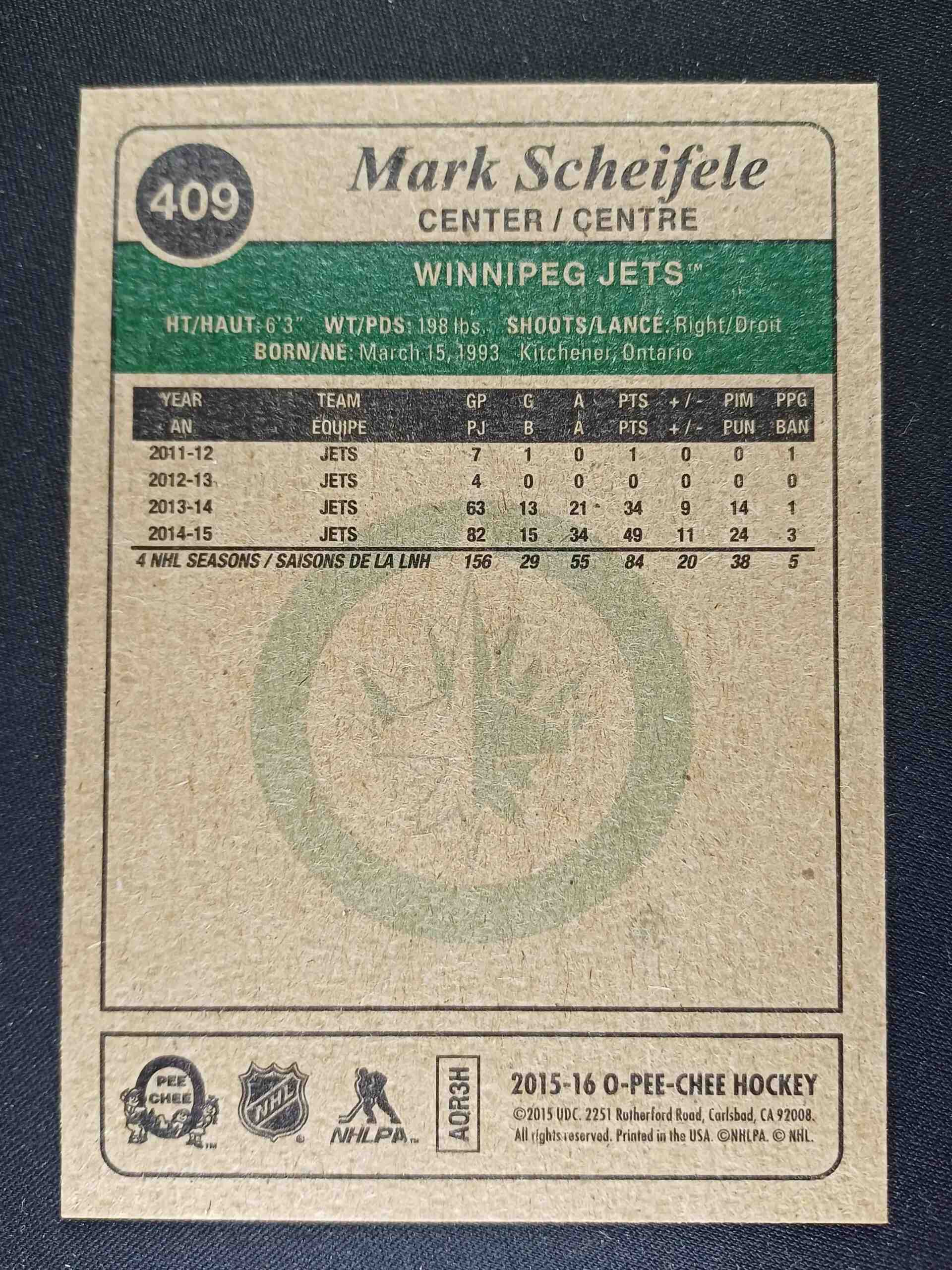 Sběratelská karta 2015/2016 Upper Deck O-Pee-Chee Retro 409 Mark Scheifele Paralel