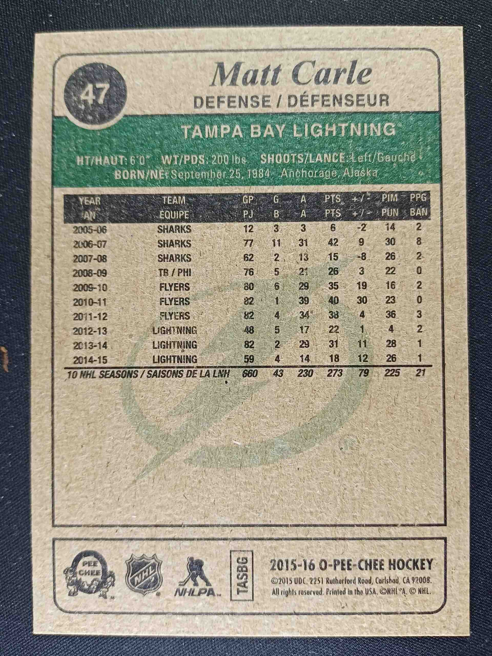 Sběratelská karta 2015/2016 Upper Deck O-Pee-Chee Retro 47 Matt Carle Paralel