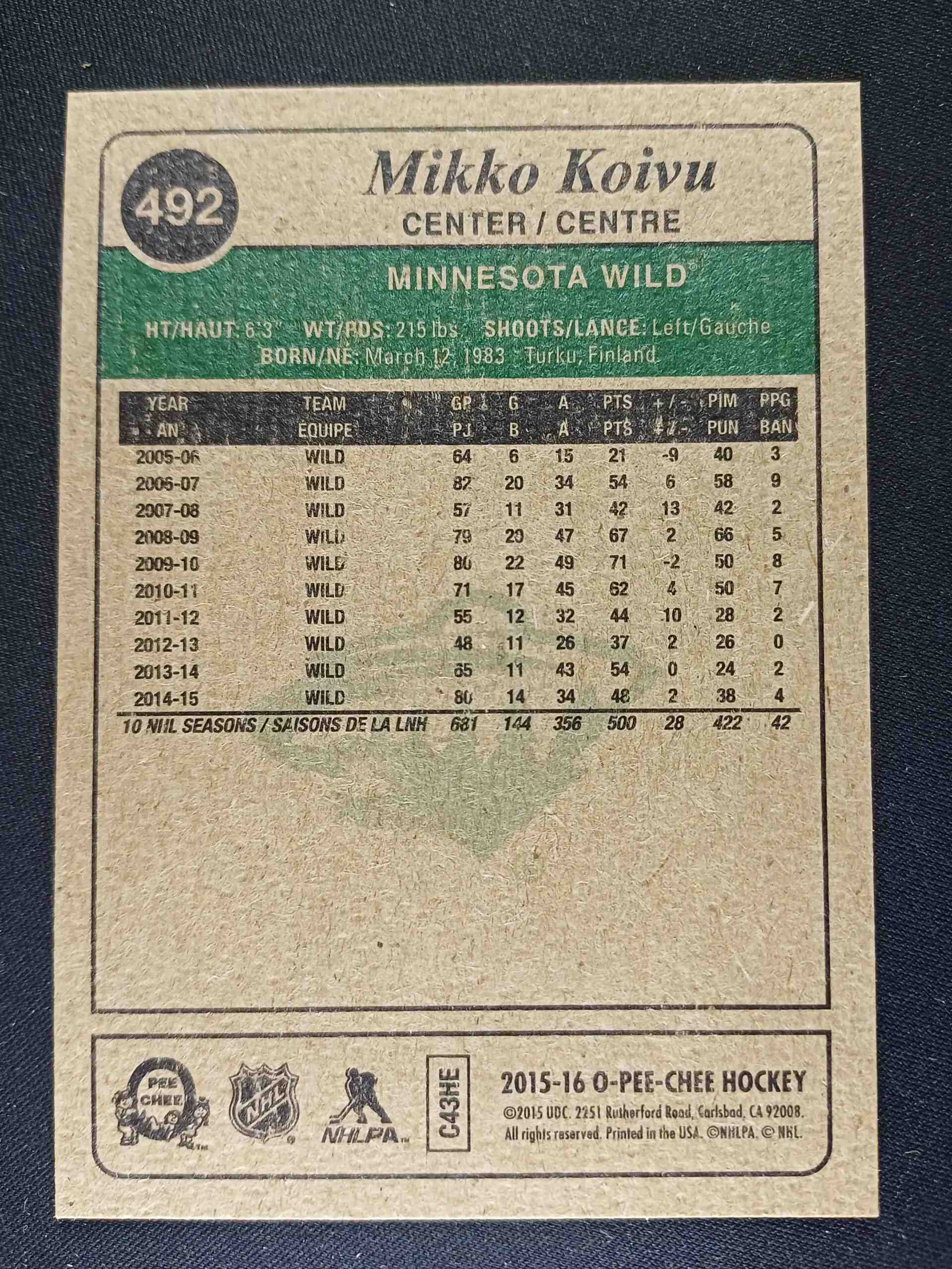 2015/2016 Upper Deck O-Pee-Chee Retro 492 Mikko Koivu Paralel