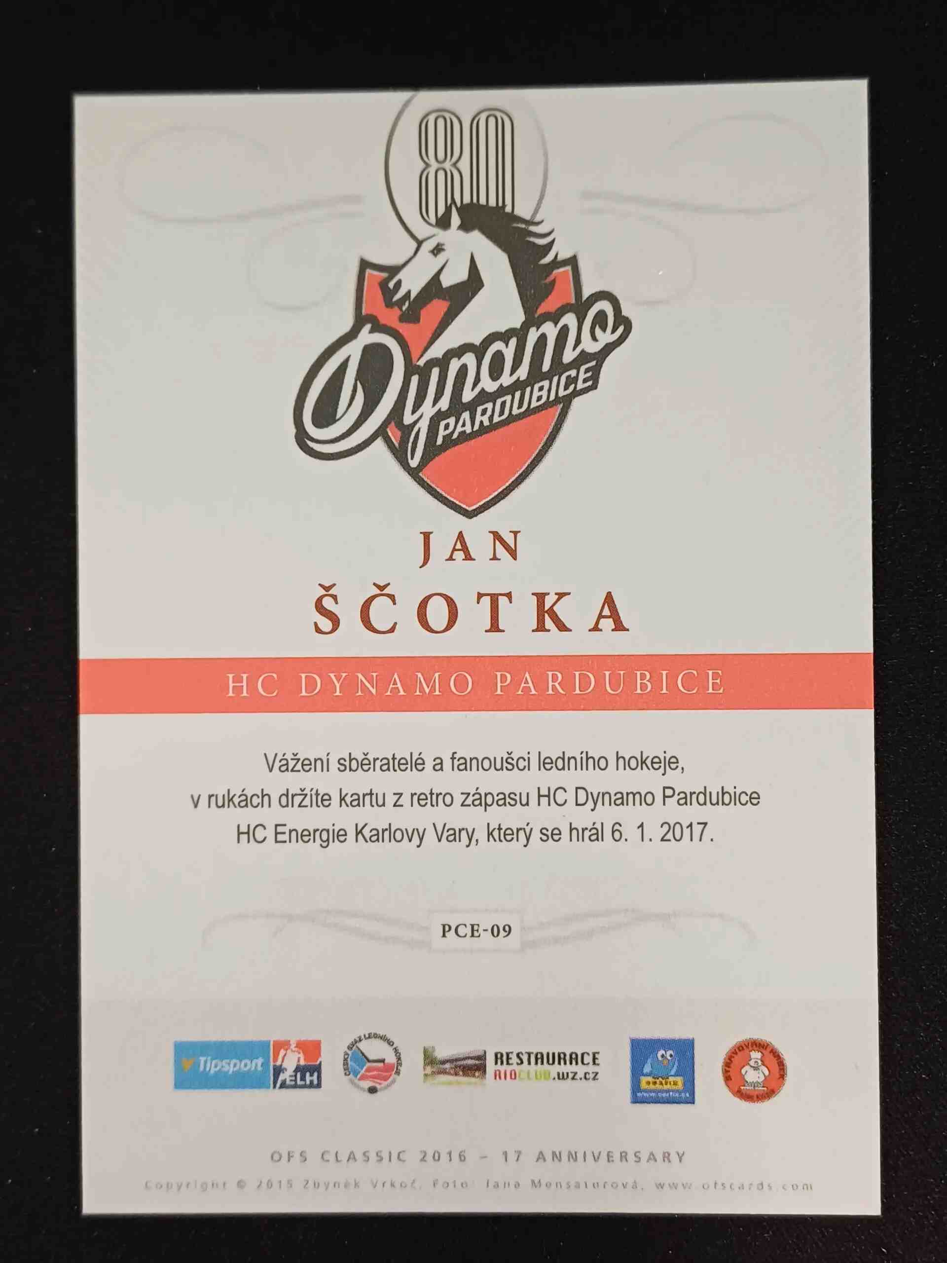 Sběratelská karta 2016/2017 OFS Classic Anniversary PCE-09 Jan Ščotka Inzert