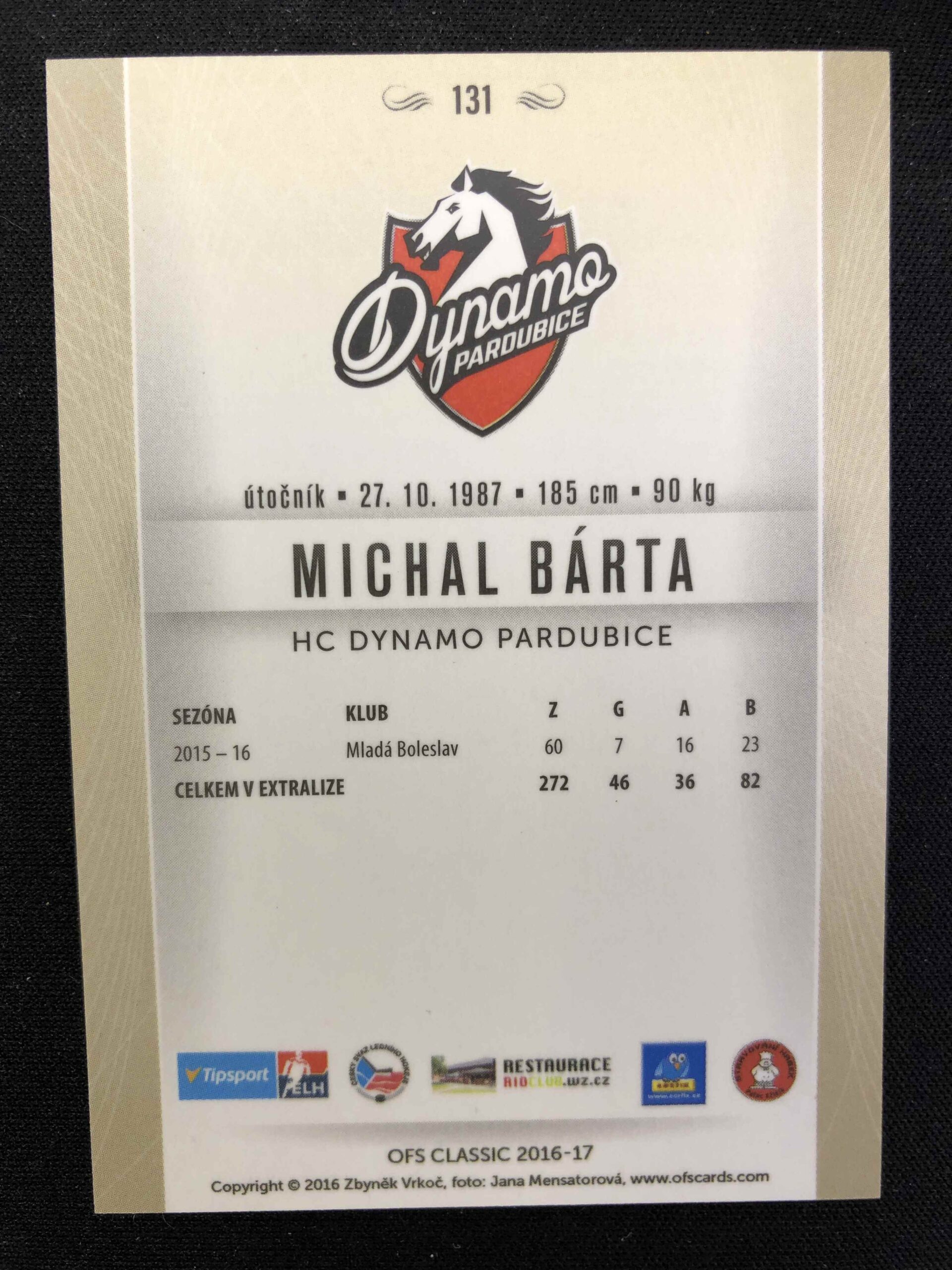 Sběratelská karta 2016/2017 OFS Classic Base 131 Michal Bárta