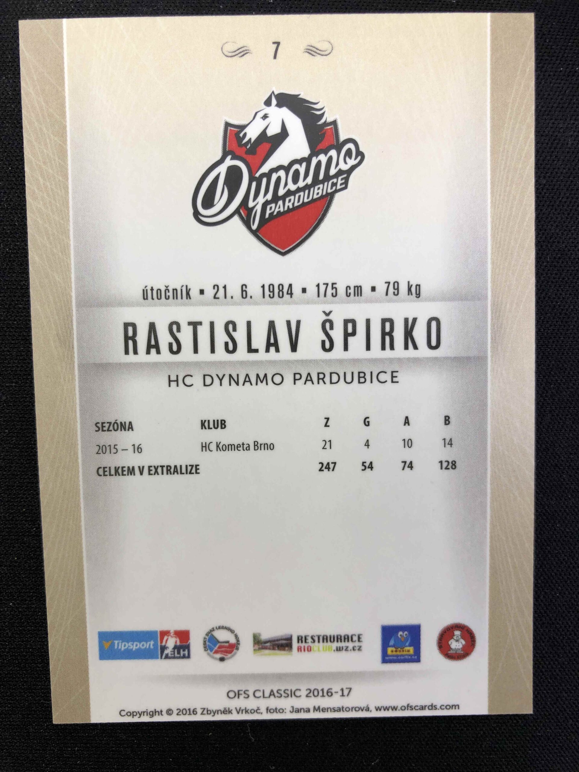 Sběratelská karta 2016/2017 OFS Classic Base 7 Rastislav Špirko