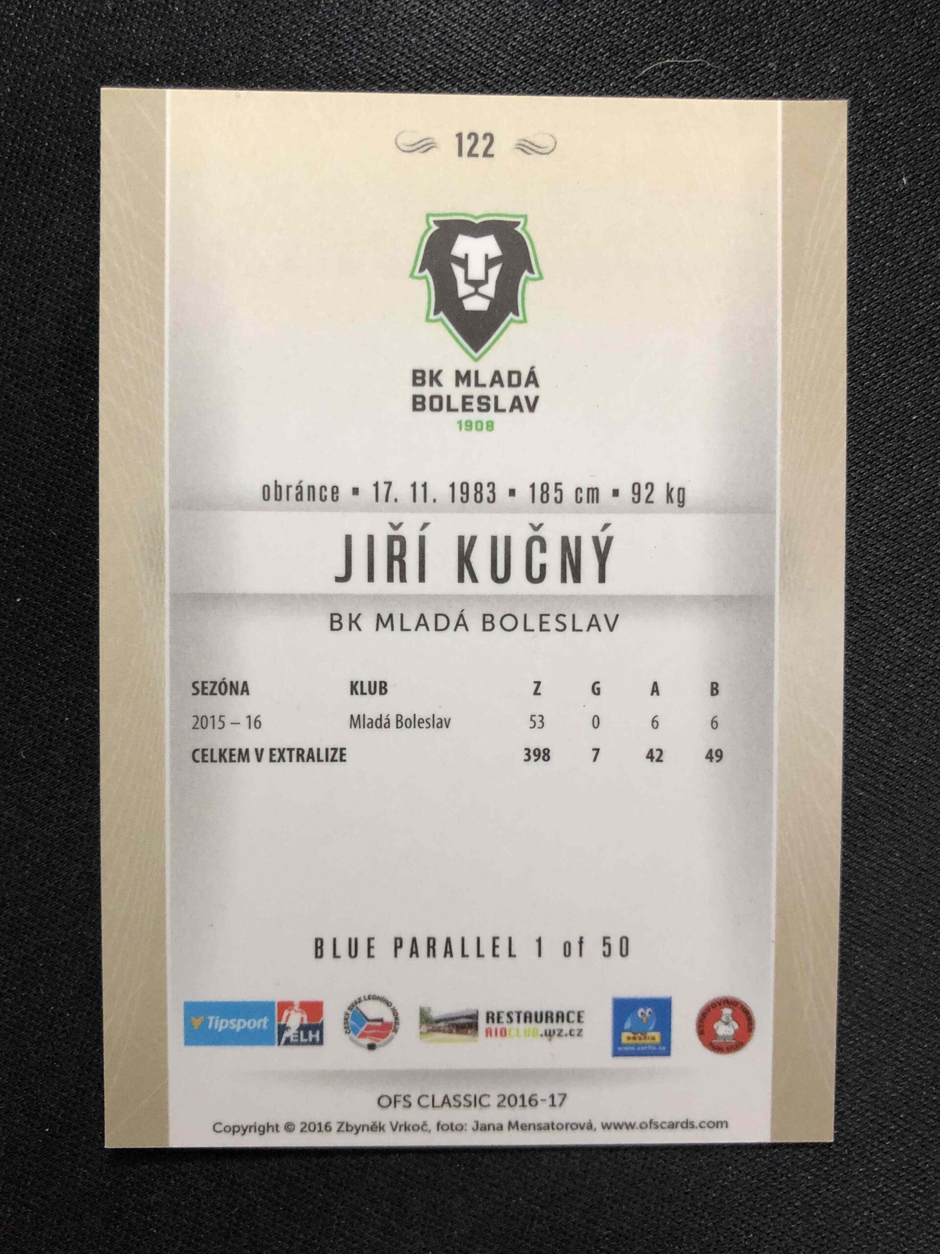 Sběratelská karta 2016/2017 OFS Classic Blue 122 Jiří Kučný Paralel /50