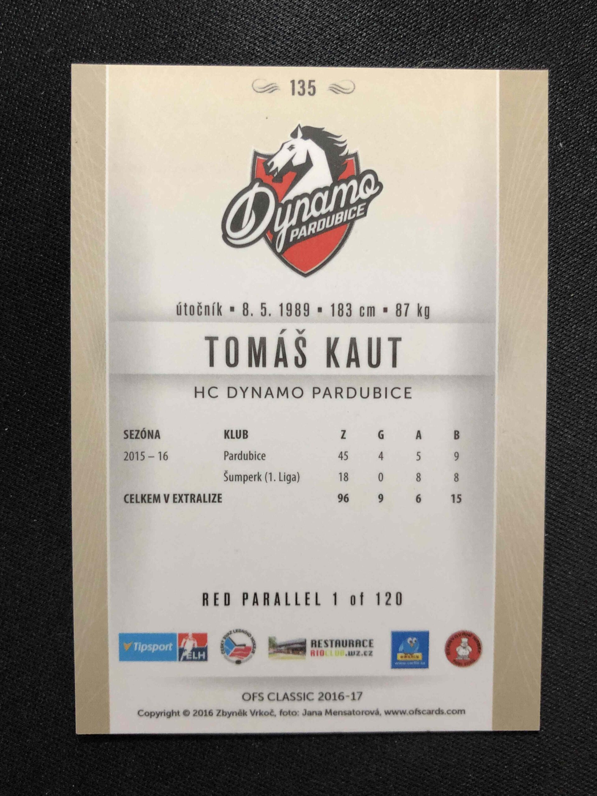 Sběratelská karta 2016/2017 OFS Classic Red 135 Tomáš Kaut Paralel /120