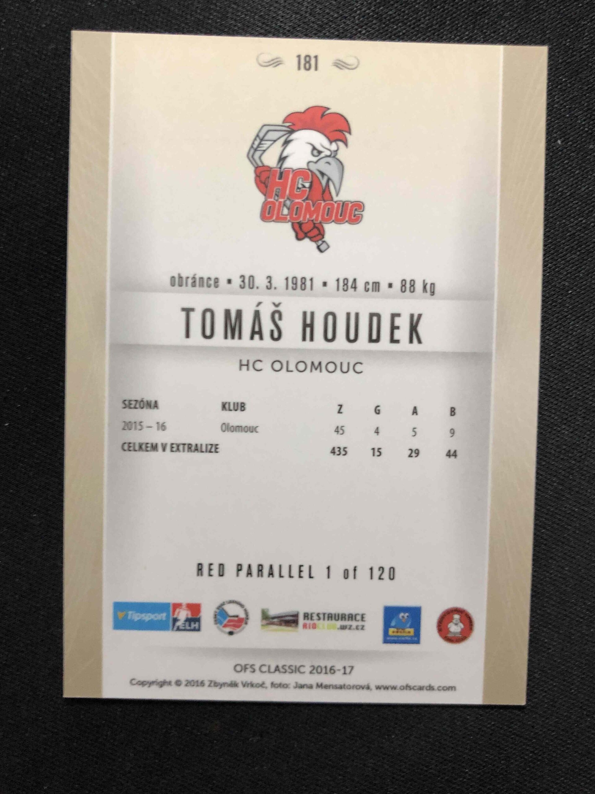 Sběratelská karta 2016/2017 OFS Classic Red 181 Tomáš Houdek Paralel /120