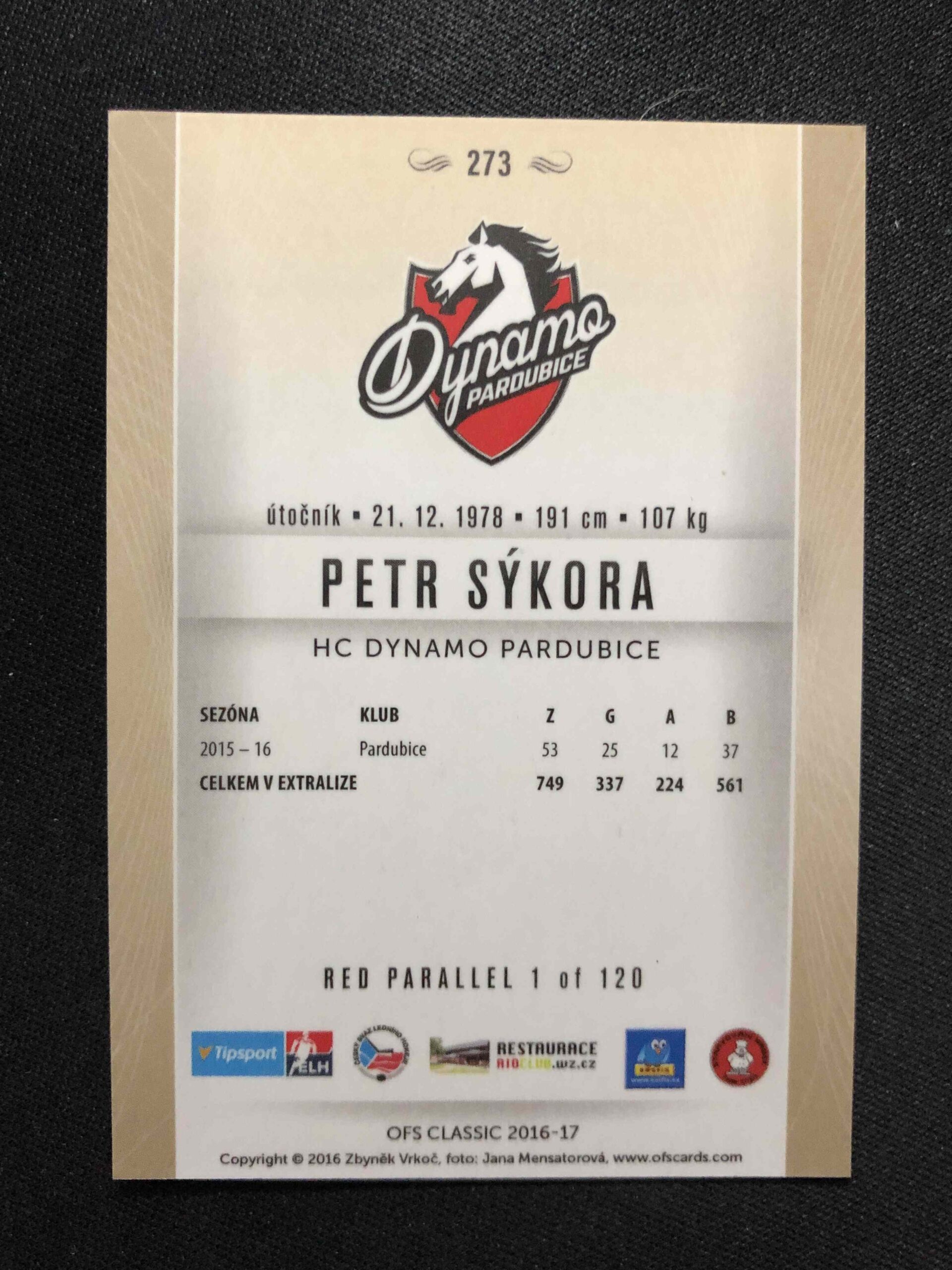 Sběratelská karta 2016/2017 OFS Classic Red 273 Petr Sýkora Paralel /120