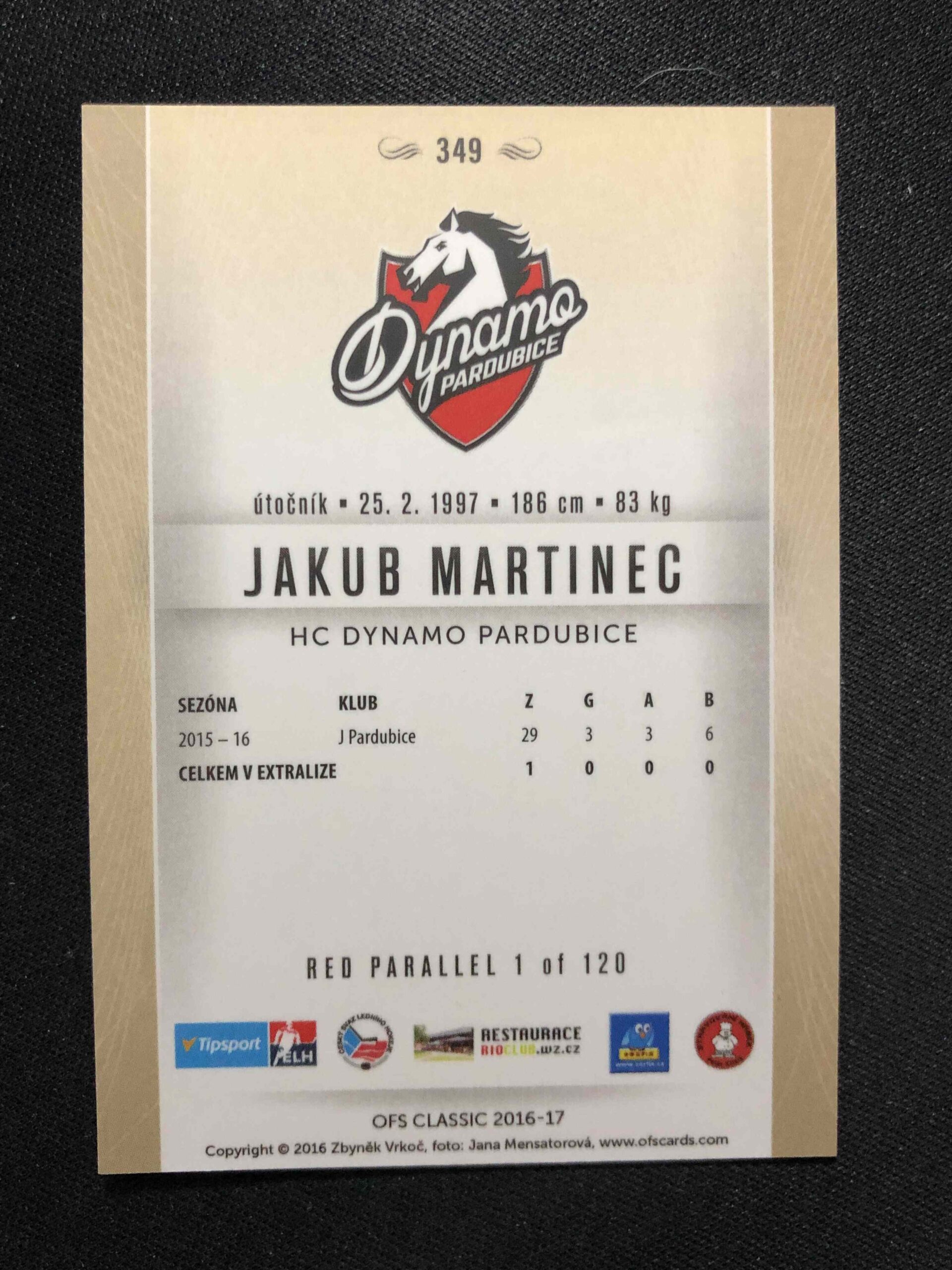 Sběratelská karta 2016/2017 OFS Classic Red 349 Jakub Martinec Paralel /120
