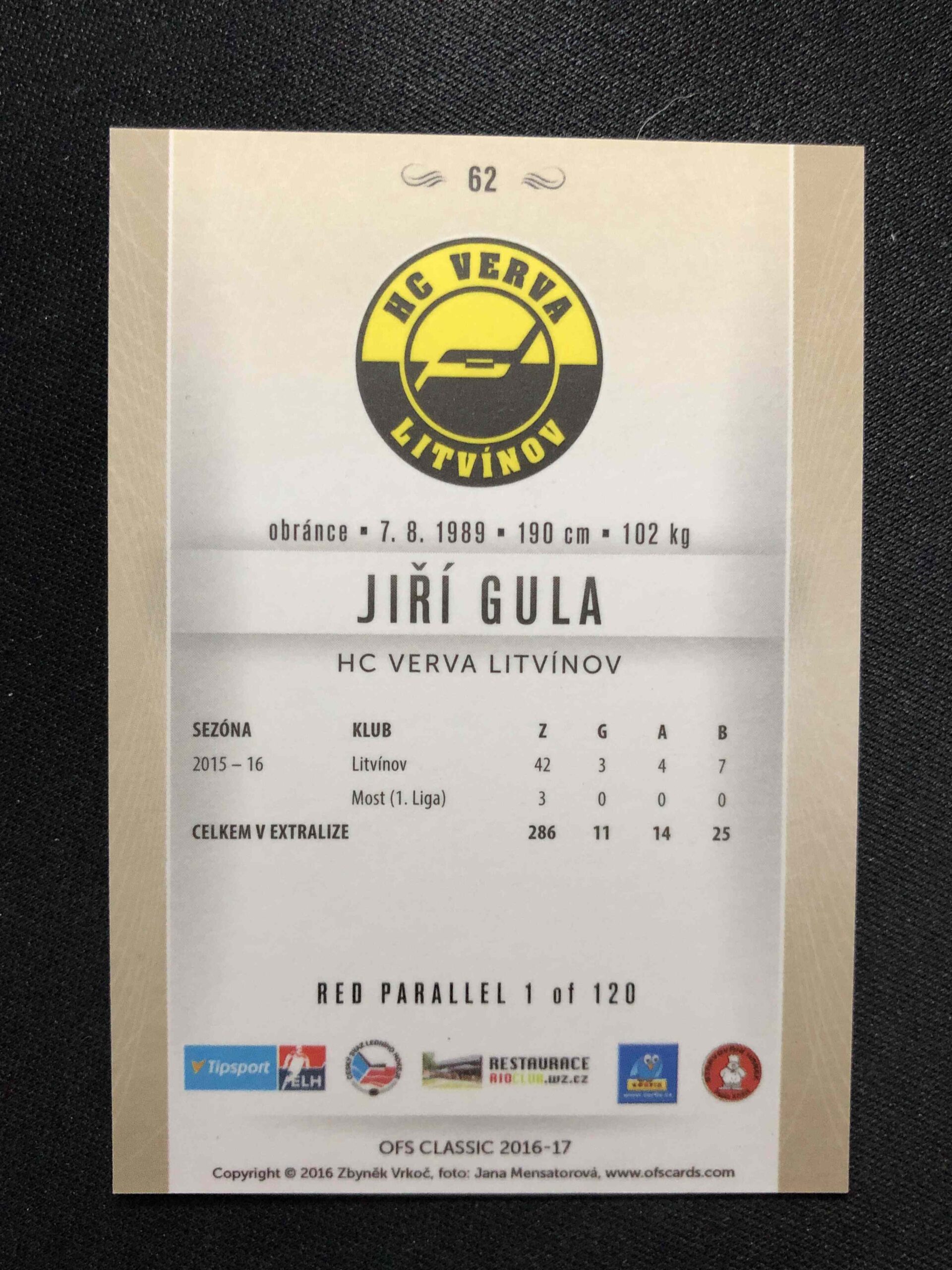 Sběratelská karta 2016/2017 OFS Classic Red 62 Jiří Gula Paralel /120